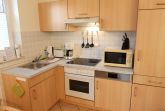 Die moderne Küche ist im Wohnbereich integriert und voll ausgestattet mit einem Ceranherd mit Backofen, Mikrowelle, Geschirrspüler und Kühlschrank.