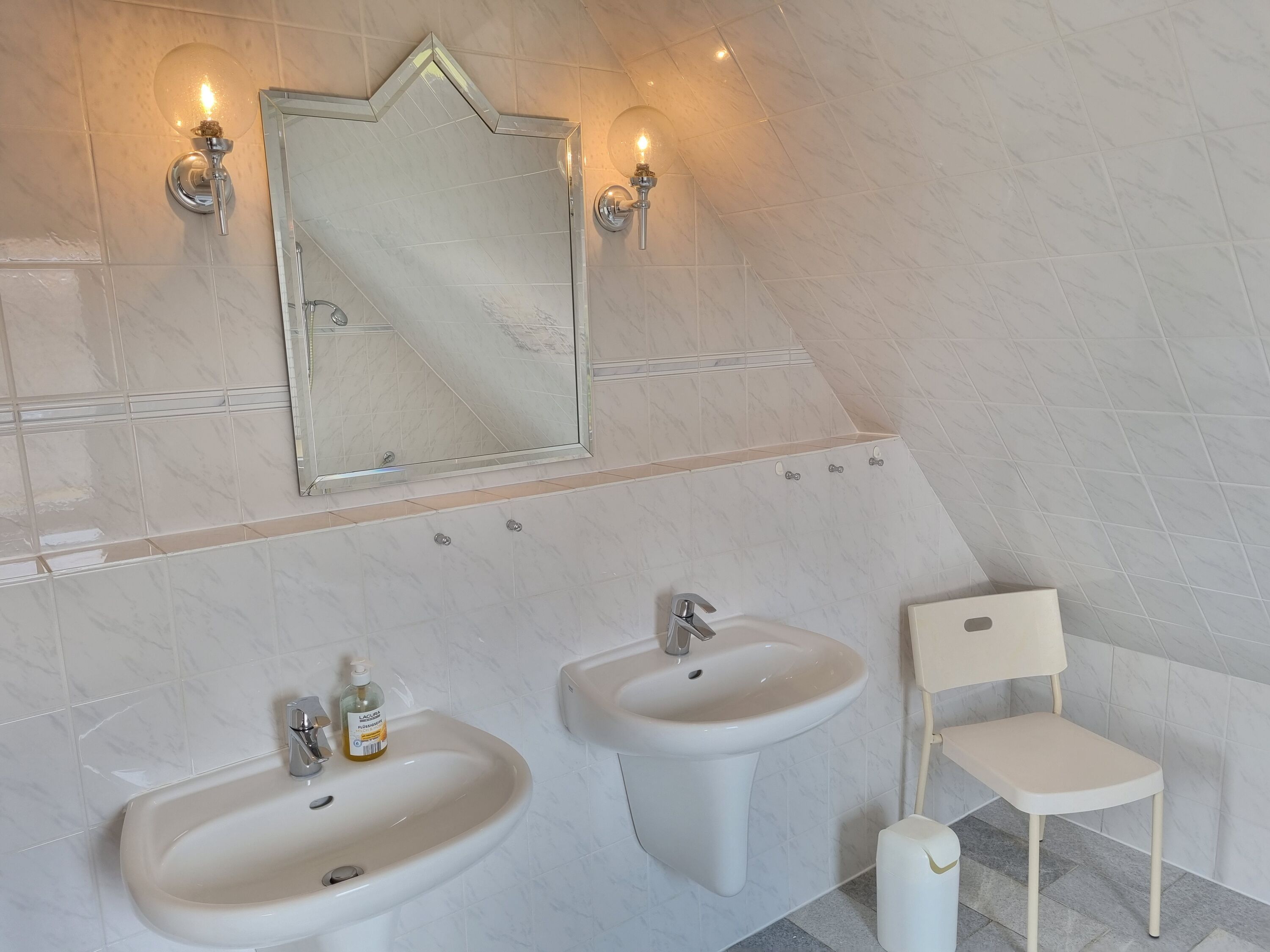 Die beiden Bäder verfügen einmal über eine Dusche und einmal über eine schöne Eckbadewanne.