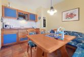 In der Küche mit gemütlicher Sitzecke und einer Küchenzeile mit einem 4-Platten Ceran Feld, können Sie sich für Ihre Ausflüge stärken.