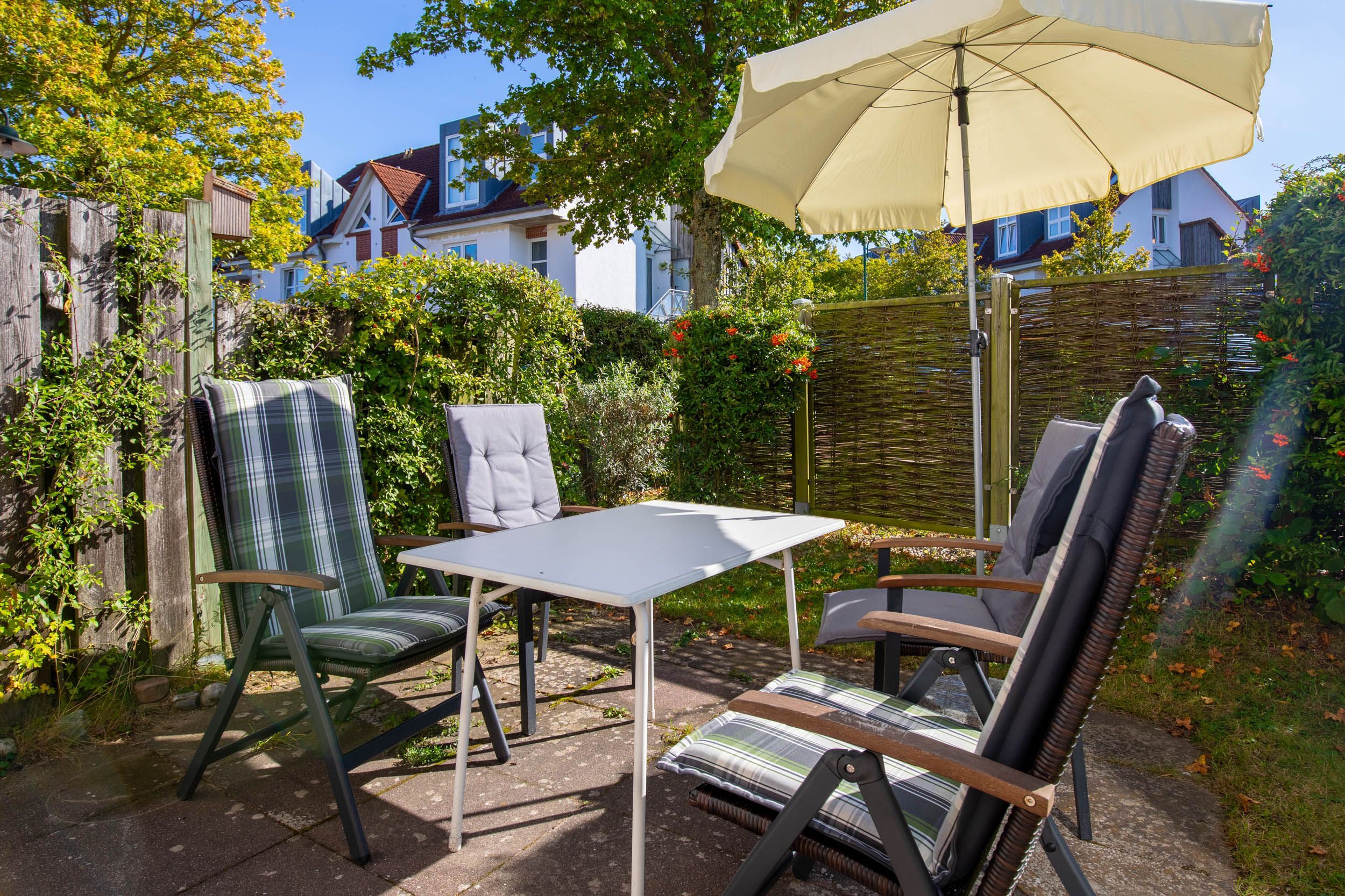 Genießen Sie die Sonne und herrliche Ostseeluft auf der möblierten Terrasse mit angrenzender Grünfläche.