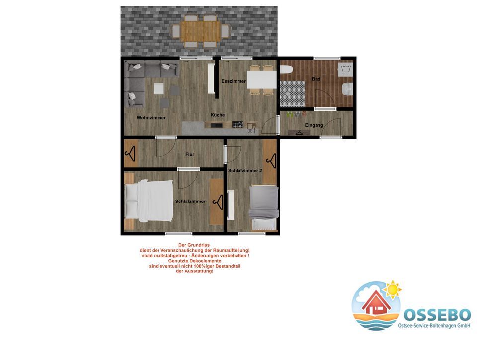 Diese 3-Zimmer-Ferienwohnung Hey in Boltenhagen mit verbundenem Wohn- und Essbereich, WLAN und Terrasse ist ideal für Ihren Familienurlaub an der Ostsee.