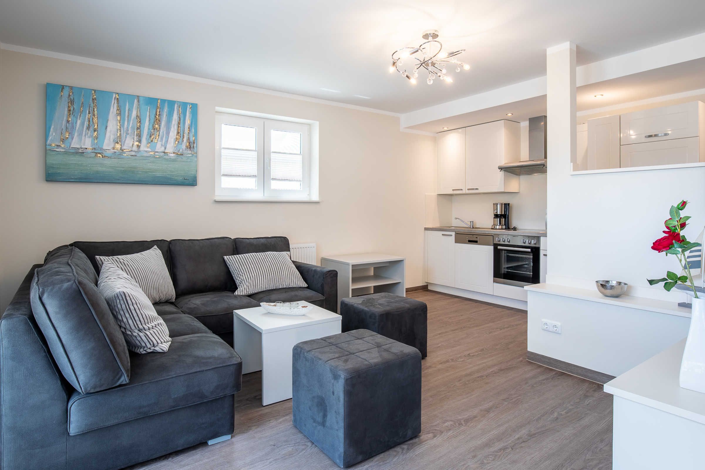 Mit der komfortabel ausgestatteten Wohnküche können Sie sich problemlos selbst verpflegen in Ihrem Urlaub. Ihre Mahlzeiten können Sie dann bequem an der separaten Essecke mit genügend Sitzmöglichkeiten einnehmen.
