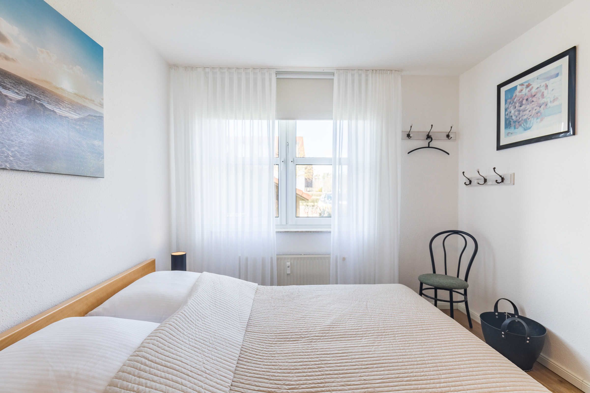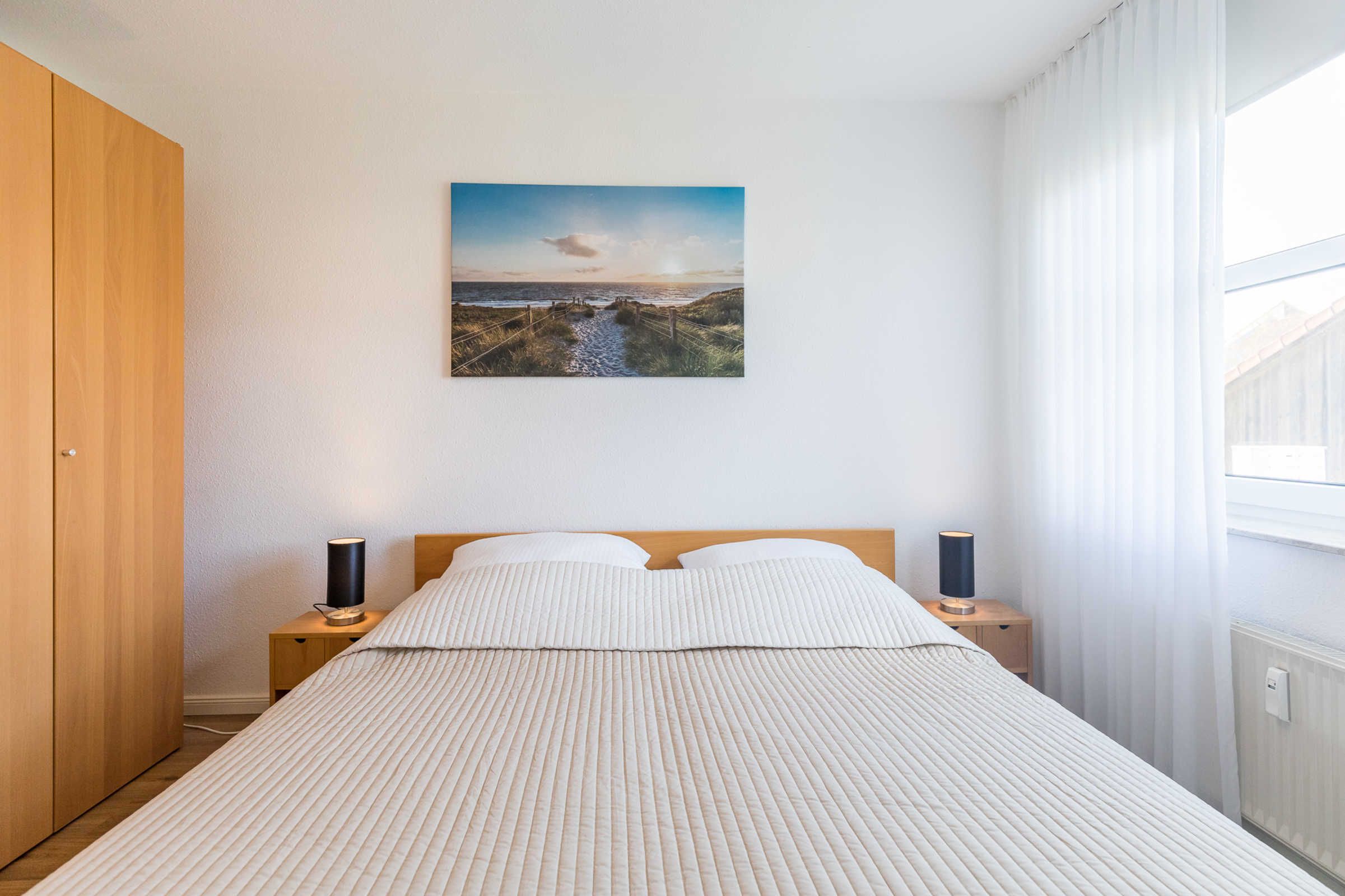 Im Schlafzimmer sorgt ein bequemes Doppelbett für erholsame Nachtruhe. Im Kleiderschrank können Sie gern Ihre Garderobe ablegen.
