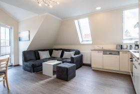 Die helle, farblich sehr stimmig eingerichtete 3-Zimmer-Ferienwohnung im 2.OG verfügt auf 75qm Wohnfläche über eine sehr moderne Ausstattung für 4 Gäste.