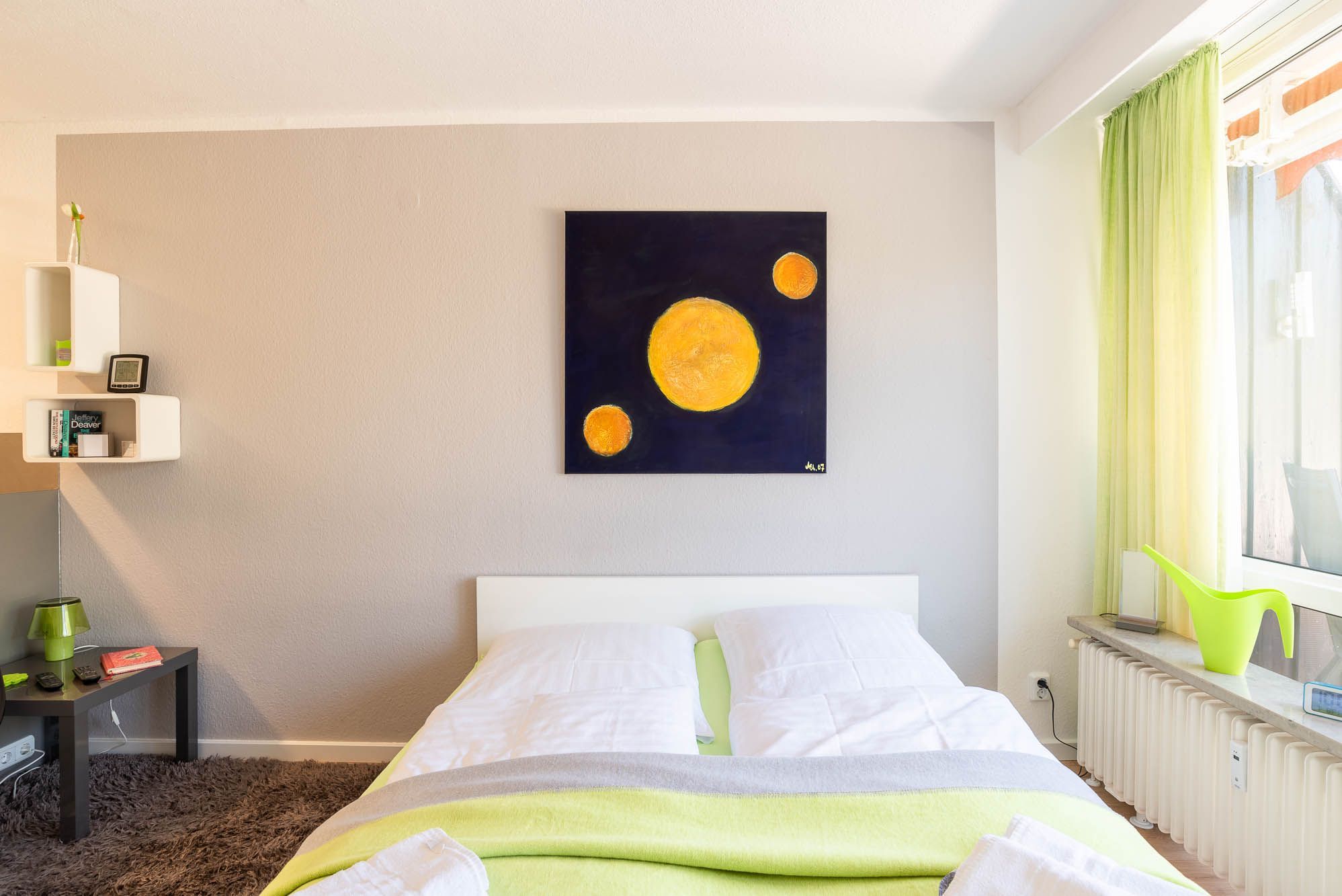 Der Froschkönig ist ein 1 Zimmer-Appartment mit 32qm Wohnfläche. Die Wohnung befindet sich in der 3. Etage (ohne Fahrstuhl) und ist zur Sonnenseite ausgerichtet. In der Ferienwohnung finden sich, thematisch passend zum Namen des Apartments, grüne Farbakzente. Die liebevolle Einrichtung verzaubert die Wohnung in einen gemütlichen Rückzugsort.