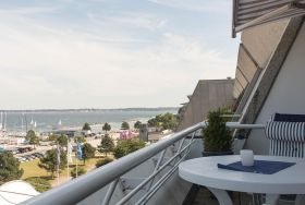 Ihr Urlaub beginnt bei Betreten dieser Ferienwohnung: Sie wohnen im 2. Stockwerk auf 52qm in einer angenehmen Atmosphäre direkt am Olympiahafen mit einem atemberaubenden Blick auf die gesamte Kieler Förde. Genießen Sie den Ausblick direkt vom 12qm großen Balkon aus, welcher mit Gartenmöbeln und einer Markise ausgestattet ist. Aber auch vom gemütlichen Appartment aus können Sie durch die bodentiefe Fensterfront den Schiffsverkehr den ganzen Tag beobachten.