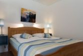 Im gesamten Appartment ist ein schöner Holzfußboden verlegt worden. Es entstehen in der großflächigen Wohnung durch Regale, die als Raumtrenner dienen, verschiedene Bereiche: Wohn-, Ess-, Schlaf-, und Küchenbereich. Dies verleiht der Ferienwohnung einen gemütlichen Charme.
