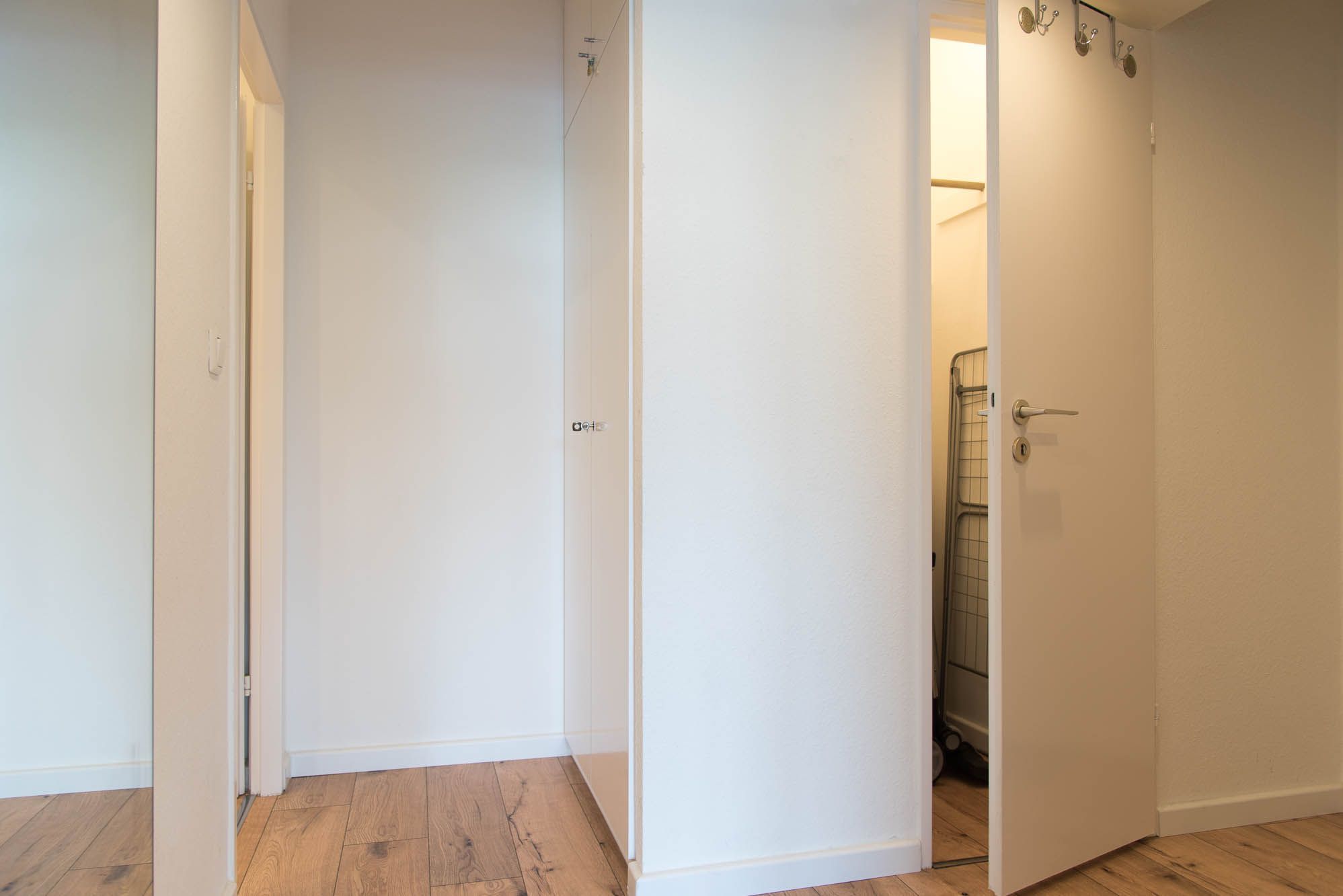 Schon der Flur bietet bei Ihrer Anreise genügend Staumöglichkeiten für Ihr Gepäck. Er verfügt neben einem großen Spiegel über eine Garderobe und eine kleine Abstellkammer.