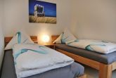 Unsere Wohnung verfügt über ein Schlafzimmer mit Doppelbett (180 x 200 m), welches mit einem geräumigen Kleiderschrank ausgestattet ist. Für ungestörte Träume wurden Vorhänge zum Abdunkeln angebracht. Das zweite Schlafzimmer ist mit zwei Einzelbetten (jeweils 90 x 200 m) und einem extra Fernseher ausgestattet. Für unsere kleinen Gäste stehen ein Kinderhochstuhl sowie ein Kinderreisebett kostenfrei zur Verfügung. Der separate Abstellraum verfügt über weiteren Stauraum für Ihre Mitbringsel, zudem steht eine Waschmaschine bereit, welche kostenlos genutzt werden kann. Genießen Sie die Abendsonne auf unserem großzügigen Balkon in entspannter Atmosphäre und lassen Sie dabei das Rauschen der Ostseewellen auf sich wirken.