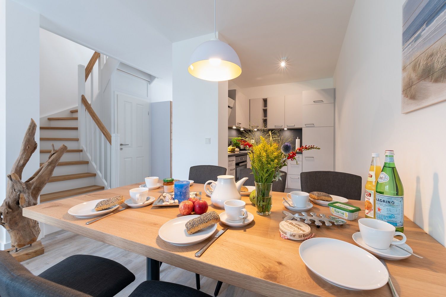Die Ferienwohnung ist besonders familienfreundlich eingerichtet und ist eine Nichtraucher-Unterkunft. Im Erdgeschoss erwartet Sie ein großer und lichtdurchfluteter Wohn- und Essbereich mit offener Küche. Das Bad besticht mit ebenerdiger Dusche, Föhn und Handtuchtrockner. Zudem können Sie Ihr Reisegepäck in einem separaten Abstellraum verstauen.
