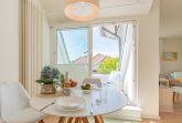 • Küche und Essbereich: Offene, voll ausgestattete Küche mit Herd, Backofen, Toaster, Kaffeemaschine, Wasserkocher und Geschirrspüler. Der angrenzende Essbereich mit rundem Tisch und vier Stühlen lädt zu geselligen Mahlzeiten ein.