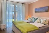 • Schlafzimmer: Zwei separate Schlafzimmer eines mit luxuriösem Boxspring-Doppelbett (200 x 200 cm) und Sat-TV, das andere mit zwei Boxspring-Einzelbetten (je 90 x 200 cm) und Sat-TV mit DVD-Player garantieren erholsame Nächte für alle Gäste.