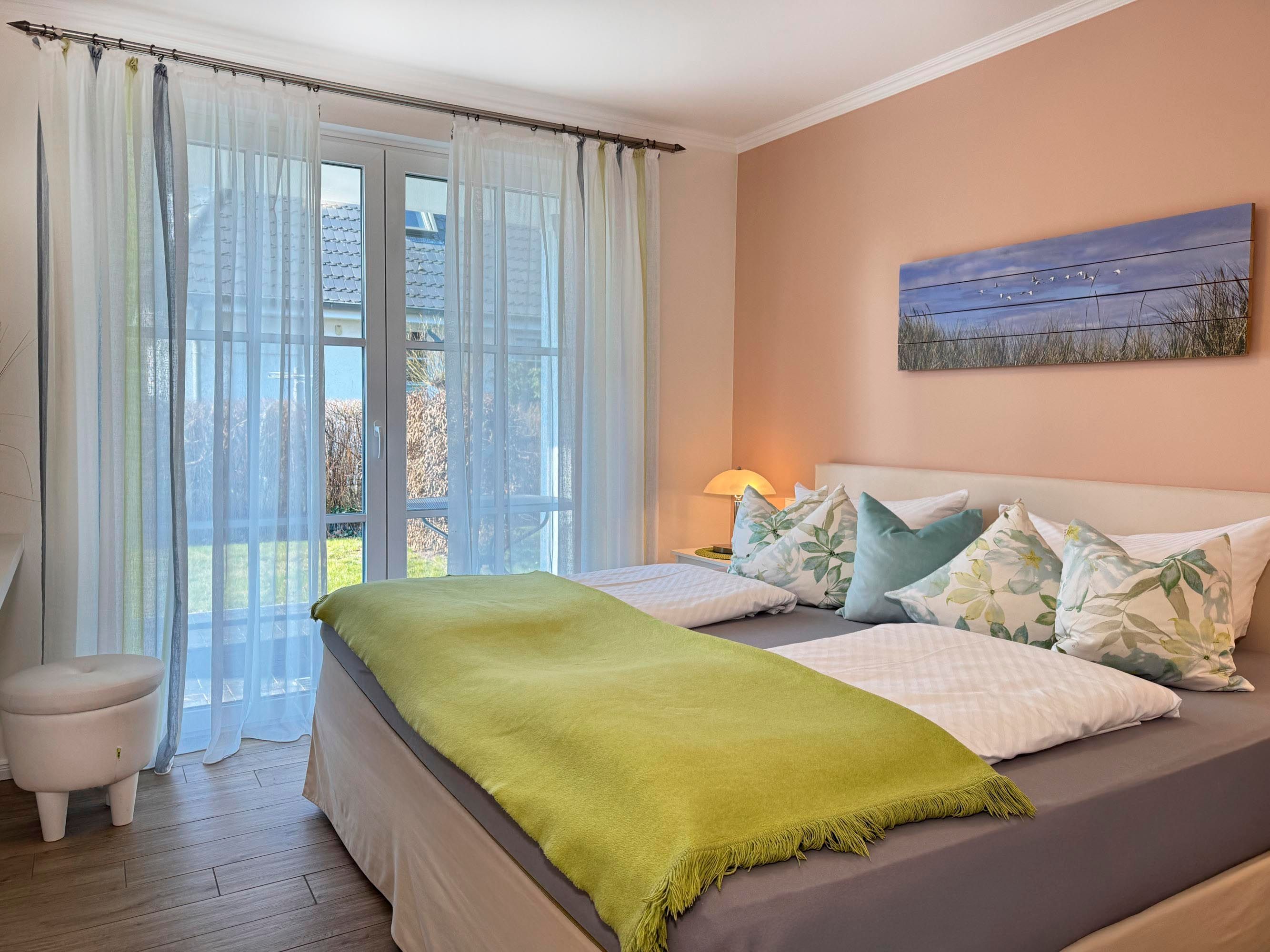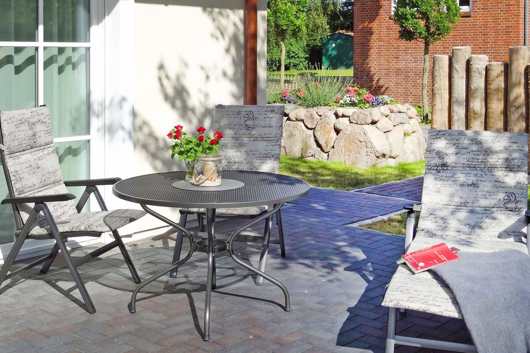 • Terrasse und Garten: Sonnige, möblierte Terrasse mit Gartenblick, ideal zum Entspannen und Genießen der frischen Ostseeluft. Ein Grill und ein Bollerwagen stehen ebenfalls zur Verfügung.