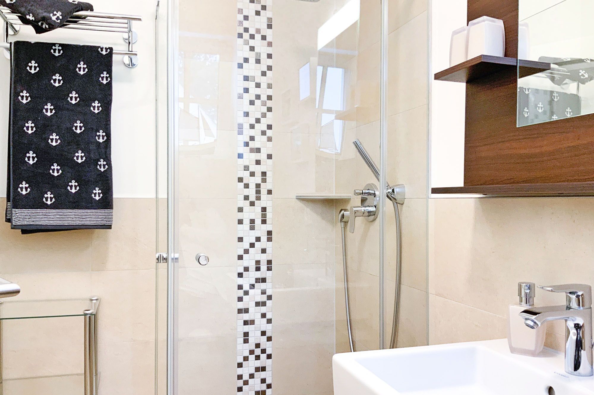 Die Ferienwohnung Käpt'n Adi empfängt Sie mit einer harmonischen Kombination aus modernem Komfort und maritimem Ambiente. Der helle Wohnbereich mit Kaminofen lädt zu entspannten Stunden ein, während die voll ausgestattete Küche keine Wünsche offenlässt. Genießen Sie Ihre Mahlzeiten auf der sonnigen Terrasse mit Gartenblick und lassen Sie den Tag in gemütlicher Atmosphäre ausklingen. Die modernen Badezimmer und die komfortablen Schlafzimmer bieten zusätzlichen Komfort für erholsame Nächte.