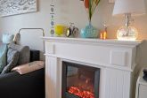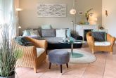 • Heller Wohn- und Essbereich mit Schlafsofa, Sat-TV, HiFi-Anlage und Elektrokamin