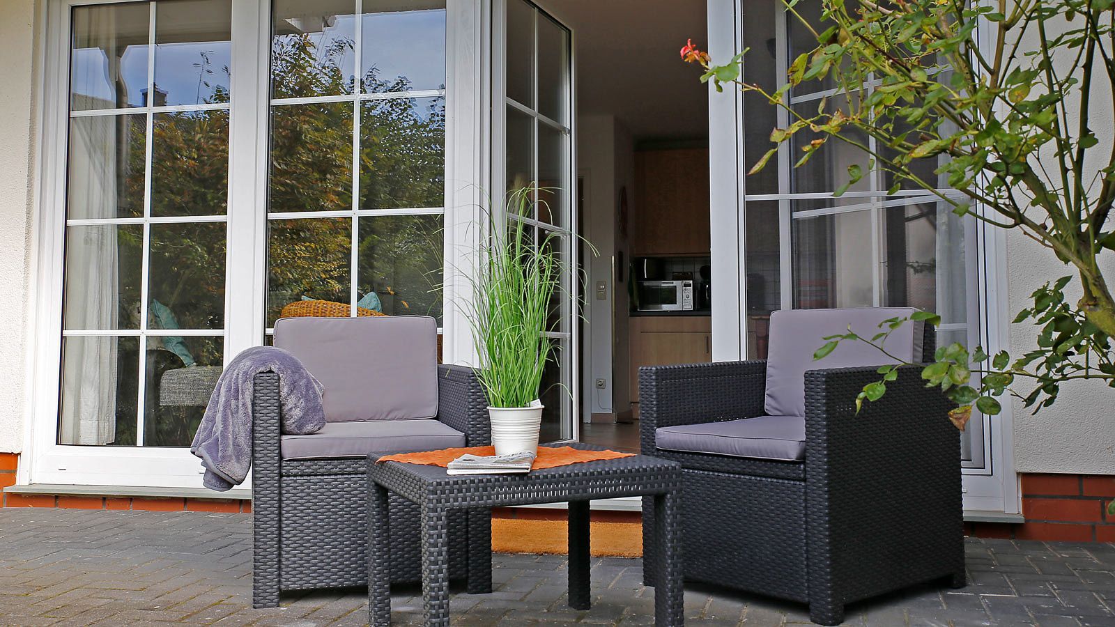 Ferienwohnung Traummomente - große Terrasse mit Lounge-Ecke