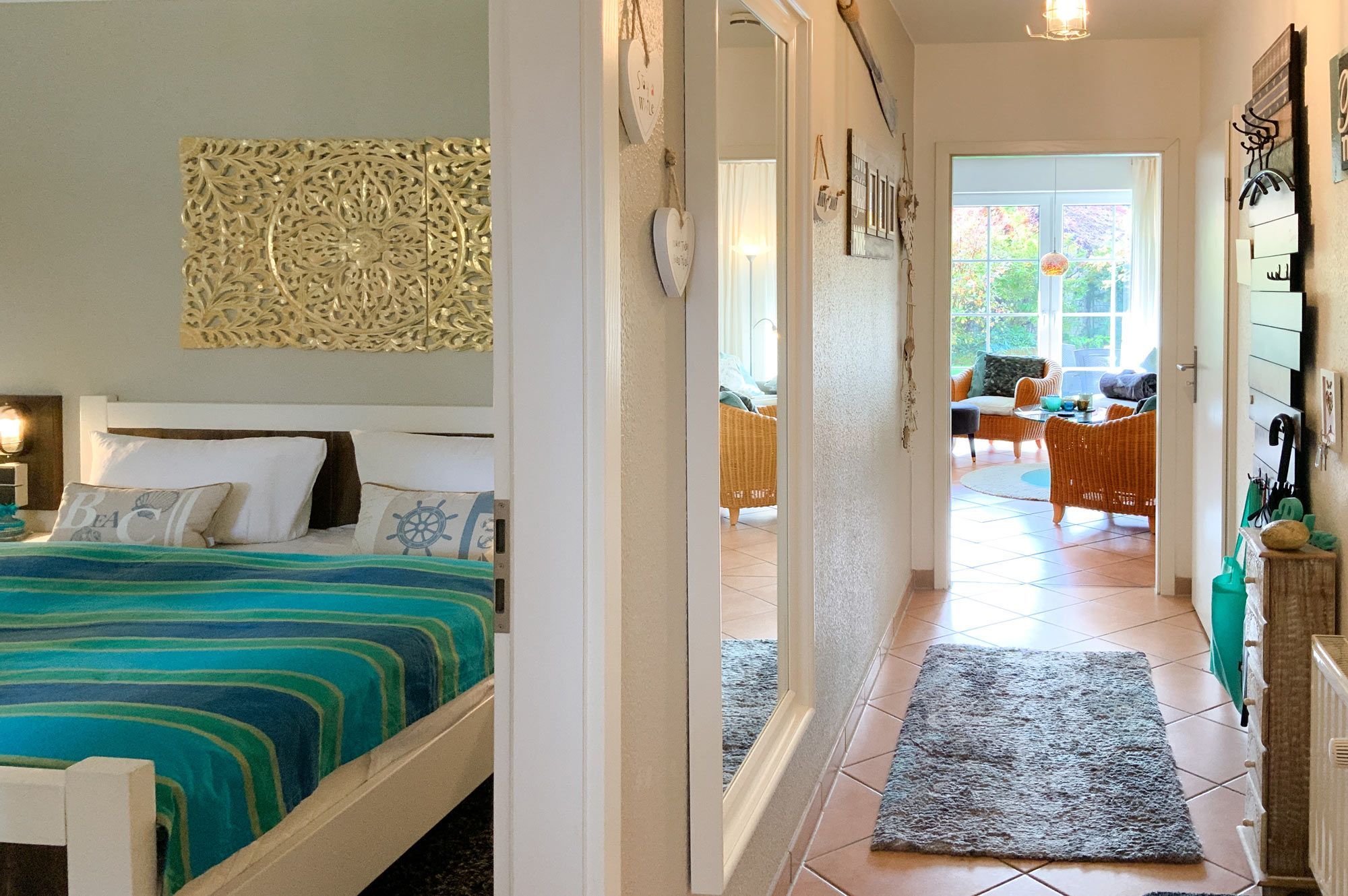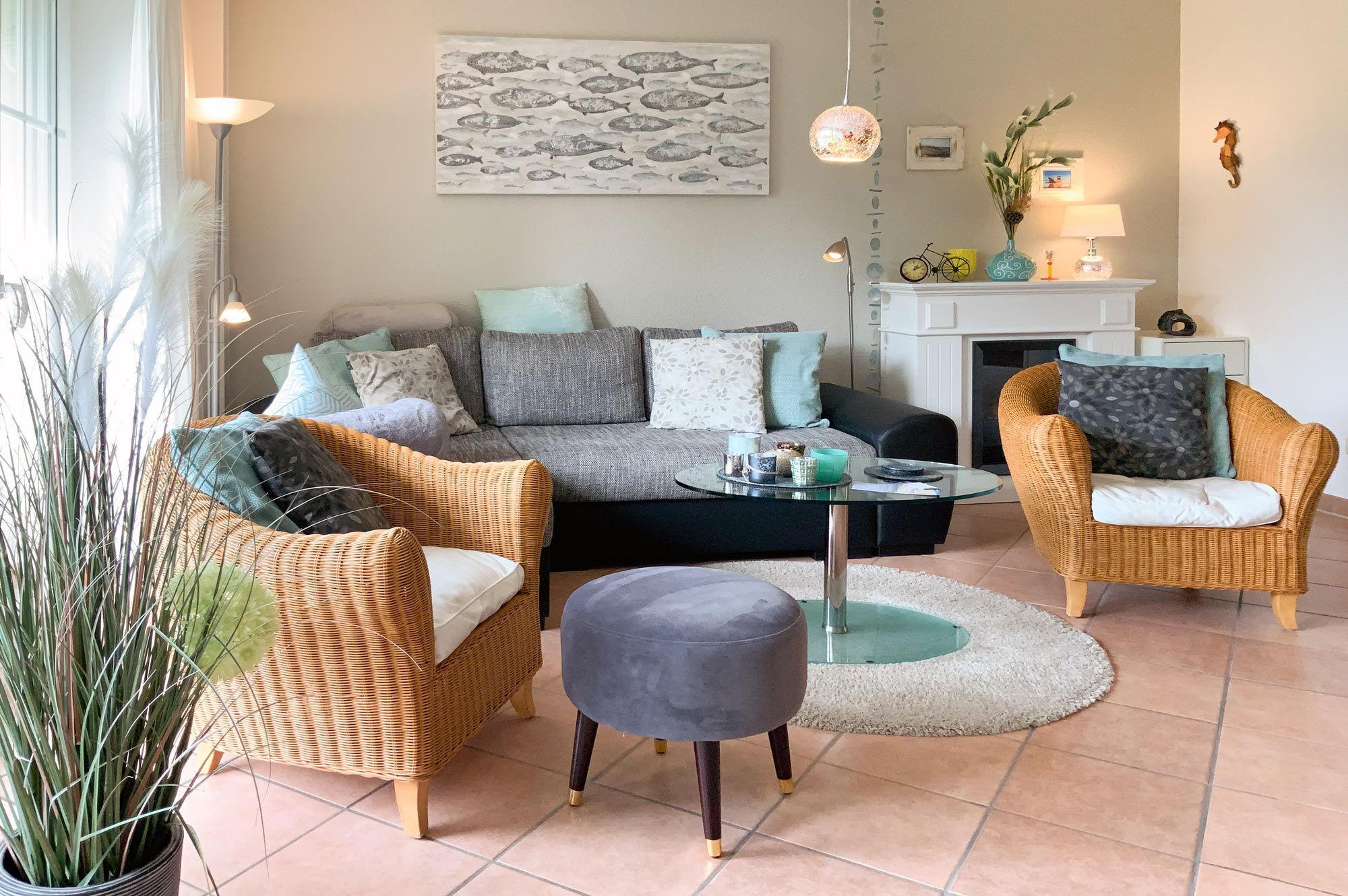 Die Ferienwohnung Traummomente empfängt Sie mit einer modernen und maritimen Atmosphäre. Der großzügige Wohn- und Essbereich lädt zum Verweilen ein, während die voll ausgestattete Küche alle Annehmlichkeiten für kulinarische Erlebnisse bietet. Das separate Schlafzimmer sorgt für erholsamen Schlaf, und der Elektrokamin schafft bei Bedarf eine gemütliche Stimmung.