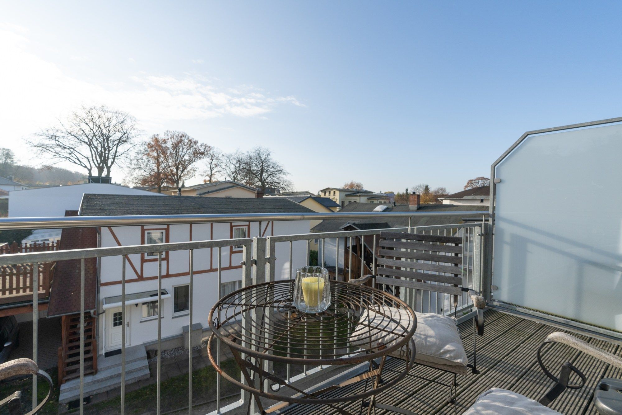 Lassen Sie den Abend nach einem erlebnisreichen Tag gemütlich auf dem Balkon (Südseite) ausklingen und genießen Sie die idyllische Ruhe.