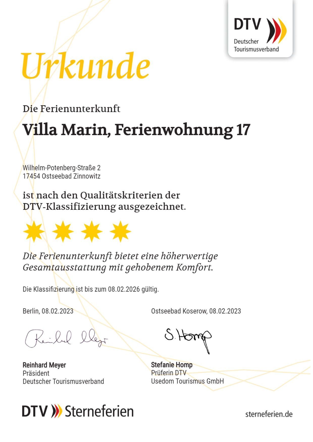 Die 62 m ² große und mit 4 DTV Sternen klassifizierte Ferienwohnung 17 befindet sich in der 1. Etage in der Villa Marin. Sie bietet mit ihren drei Zimmern ausreichend Platz für bis zu 6 Personen.