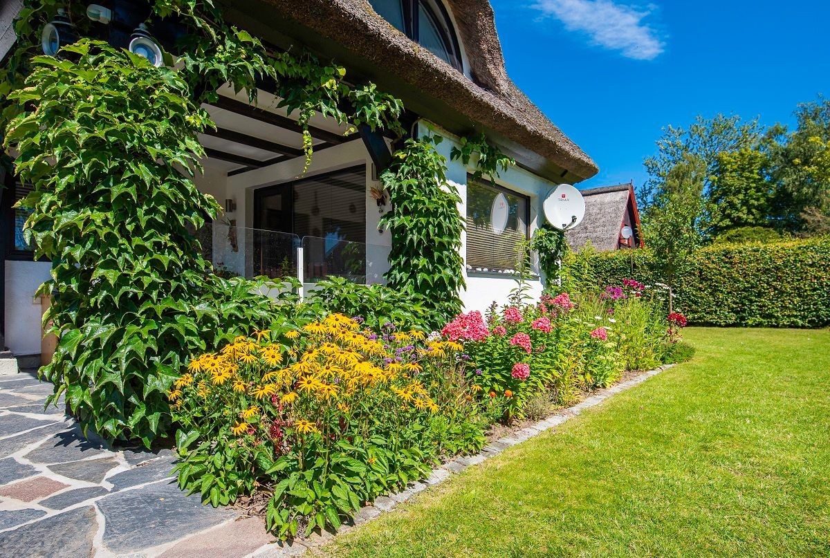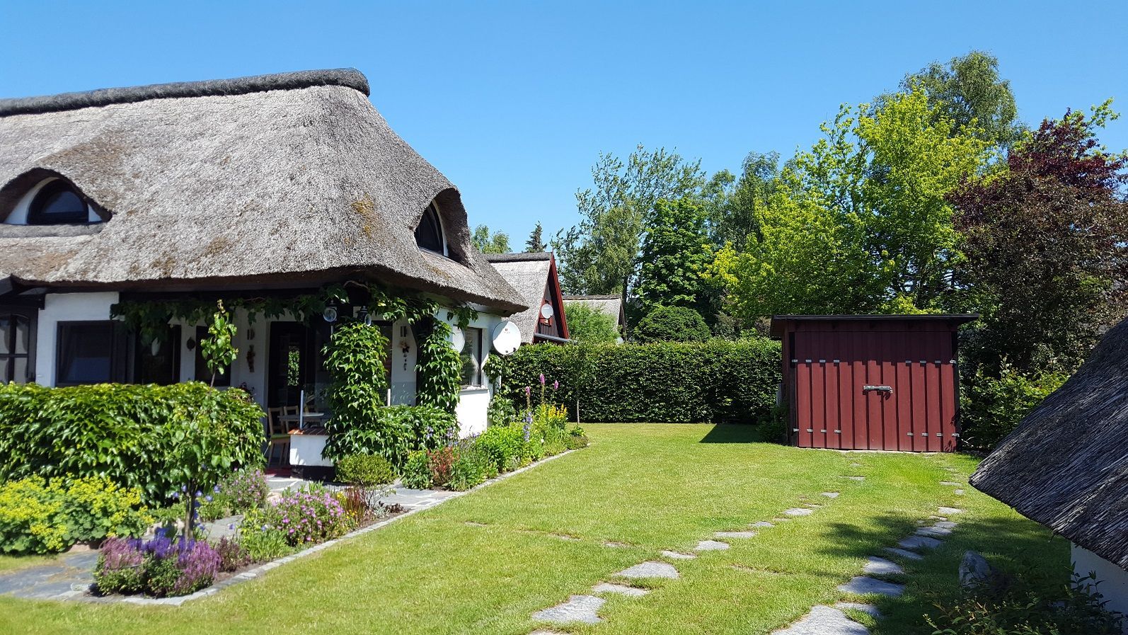 Unser weinberanktes Feriendomizil befindet sich in dritter Generation in Familienbesitz und liegt inmitten der historischen Ferienhaussiedlung des Fischerdorfes Börgerende an einem kleinen kaum befahrenen Weg. Das idyllische Grundstück mit prachtvollen Blühpflanzen, umgeben von üppigem Baumbestand und alten Buchenhecken, ist vom öffentlichen Raum gänzlich abgeschottet. Auf 400 qm bietet es neben einer großzügigen Rasenfläche genügend Raum für Rückzug. Die Grundsanierung des Hauses in 2019 macht es möglich, dass wir unser Kleinod nun an Gäste vermieten können.