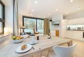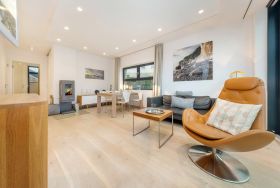 Der Wohn- und Essbereich lädt mit hochwertigen Leder- und Eichenmöbeln, integrierter Designerküche und modernster Unterhaltungselektronik zum gemeinsamen Entspannen ein. Für kuschelige Gemütlichkeit sorgen der Kamin, die Sauna mit Farblicht und eine Fußbodenheizung. Auch das stilvolle Schlafzimmer und das Interieur des Masterbads mit seinem Designwaschtisch und der ebenerdigen Dusche werden Sie begeistern. Auf der südwestlich ausgerichteten Terrasse stehen Ihnen bequeme Sitzmöbel und ein BBQ-Grill zur Verfügung.