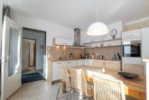 Ihr Urlaubsdomizil ist bauhaustypisch klar und modern eingerichtet. Alle Räume sind geschmackvoll und unaufdringlich dekoriert. Die Wände sind hell und in einer harmonischen Abstimmung zum funktionalen Mobiliar gestaltet. Der Bodenbelag besteht durchgängig aus Eichendielen weiß geölt und großen Steinfliesen. Die flächendecken ausgebrachte Fußbodenheizung sorgt im ganzen Haus für angenehme Wärme. Selbstverständlich verfügt Ihr Haus über kostenfreies W-LAN, und auch die übrige technische Ausstattung lässt keine Wünsche offen. Sie sehen, in Ihrem Urlaub in der Meeresperle wird es Ihnen an nichts fehlen. Wir wünschen Ihnen schon jetzt eine recht angenehme Zeit!