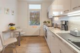 Wenn Sie einmal nicht unterwegs oder in einem der netten Lokale in der Nachbarschaft speisen möchten, dann ist die separate Küche Ihrer Fewo bestens ausgestattet, damit Sie sich selbst bekochen können. Dazu zählen u.a. ein Ceranherd mit Backofen, eine Kühl-Gefrierkombination, eine Geschirrspülmaschine, außerdem Mikrowelle, Kaffeemaschine, Wasserkocher und Toaster.