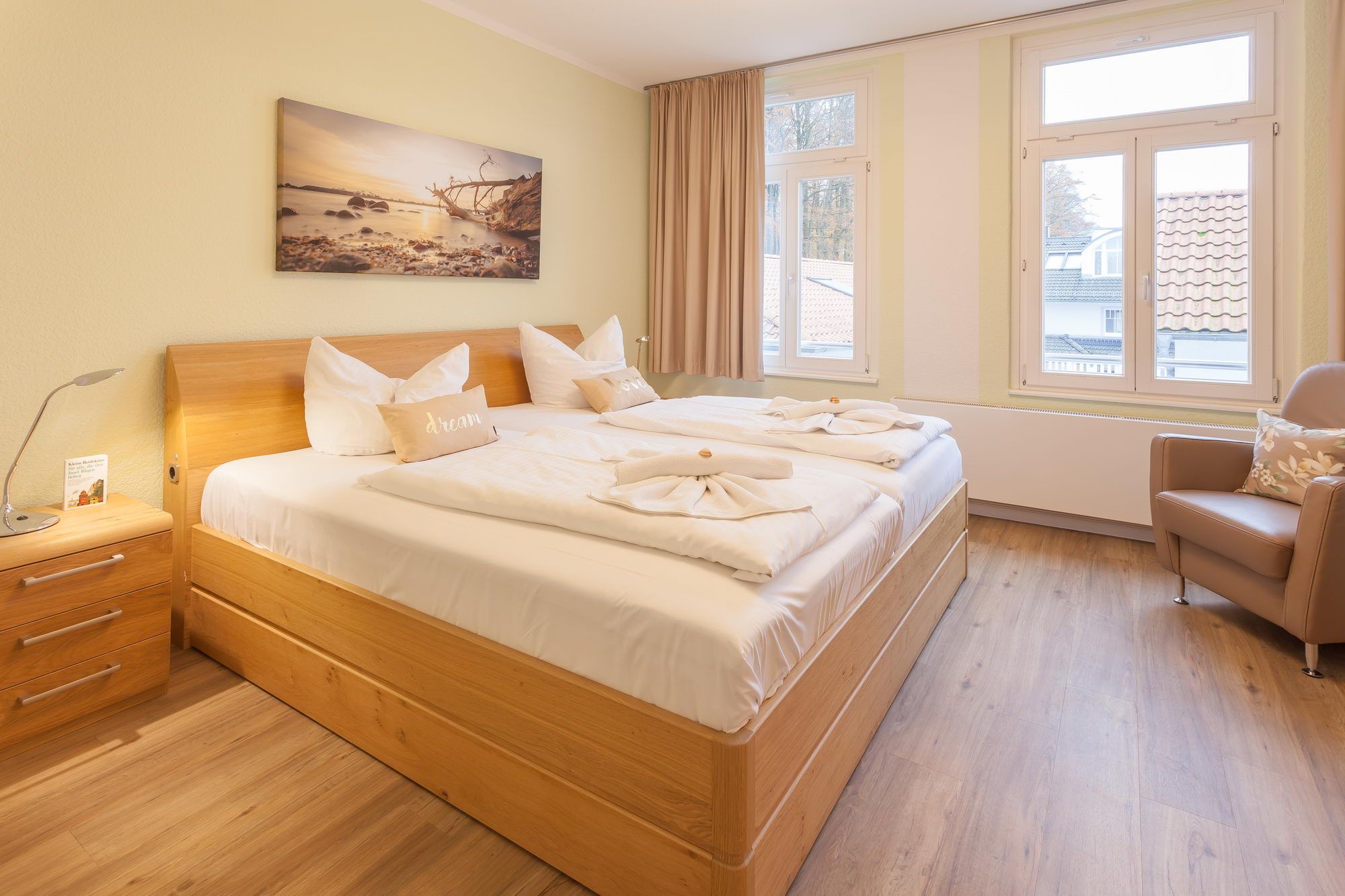 Ankommen, aufatmen und wohlfühlen. Die Ferienwohnung Bernstein im zweiten Obergeschoss der Villa Odin möchte Ihnen genau dieses wunderschöne Gefühl vermitteln. Von den Eigentümern im Frühjahr 2016 liebevoll modernisiert und komplett neu ausgestattet, erwartet Sie auf rund 63 qm Wohnfläche eine kuschelige Unterkunft für bis zu drei Personen.