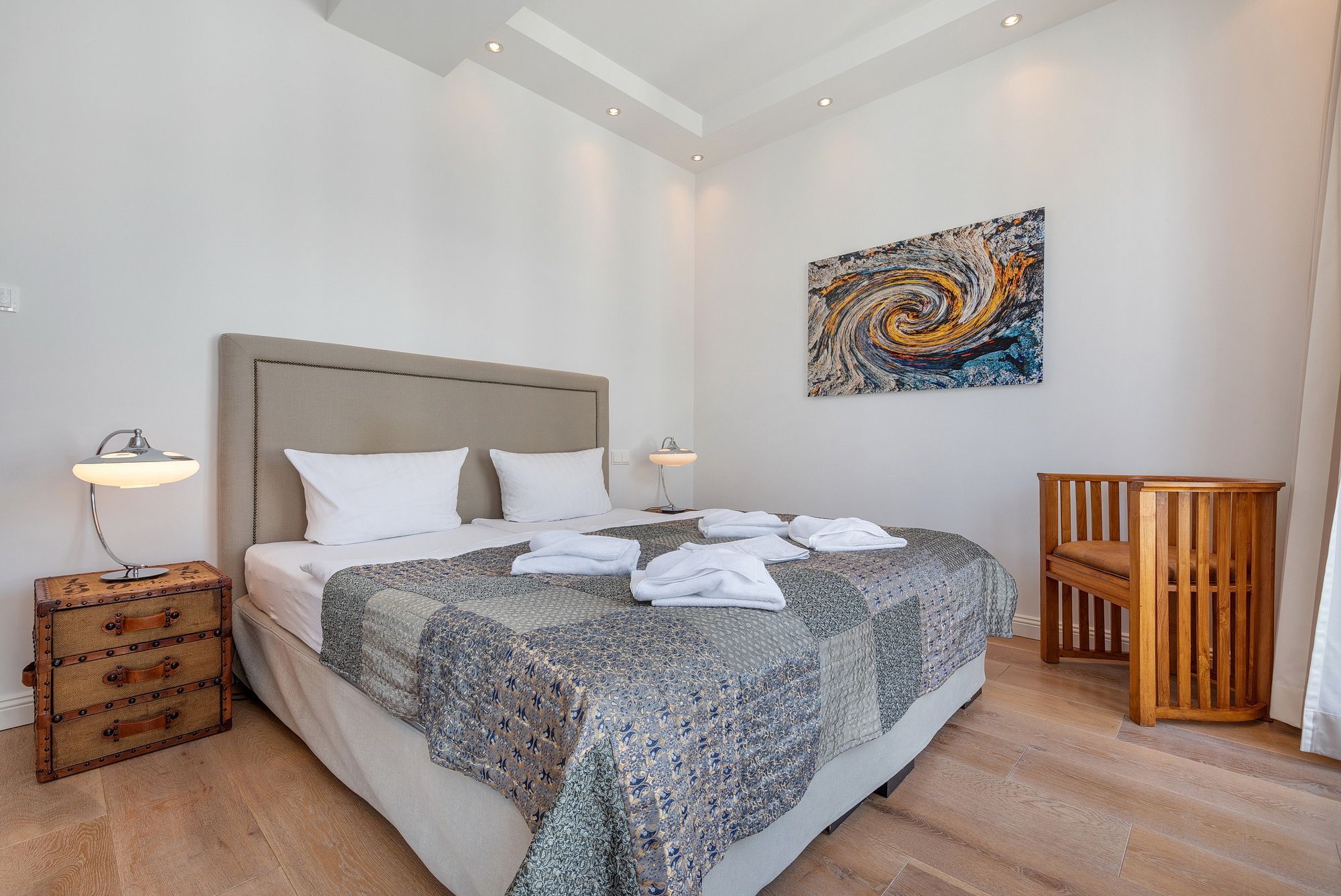 Das Penthouse Seaside erstreckt sich über das erste und zweite Dachgeschoss der Villa Theres und wartet auf stolzen 155 Quadratmetern mit Eleganz und Luxus pur auf. Schon beim Eintreten überrascht Sie Ihr Urlaubsdomizil mit seiner angenehmen Helligkeit, den hohen Decken, einer hochwertigen Eichendielung und dem perfekt abgestimmten Miteinander von Formen, Farben und Materialien.