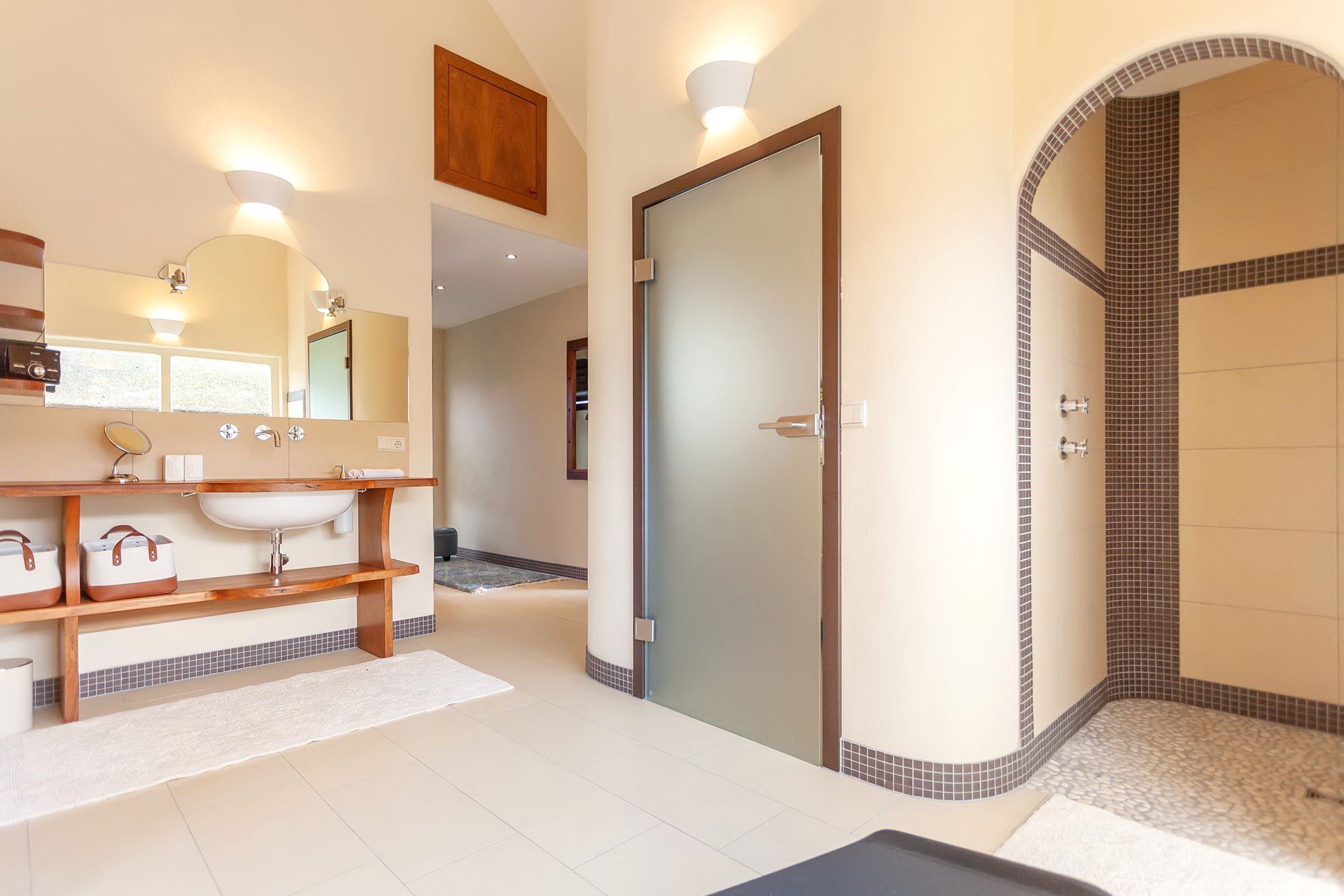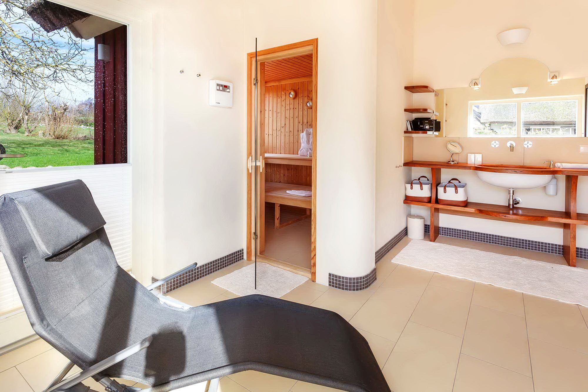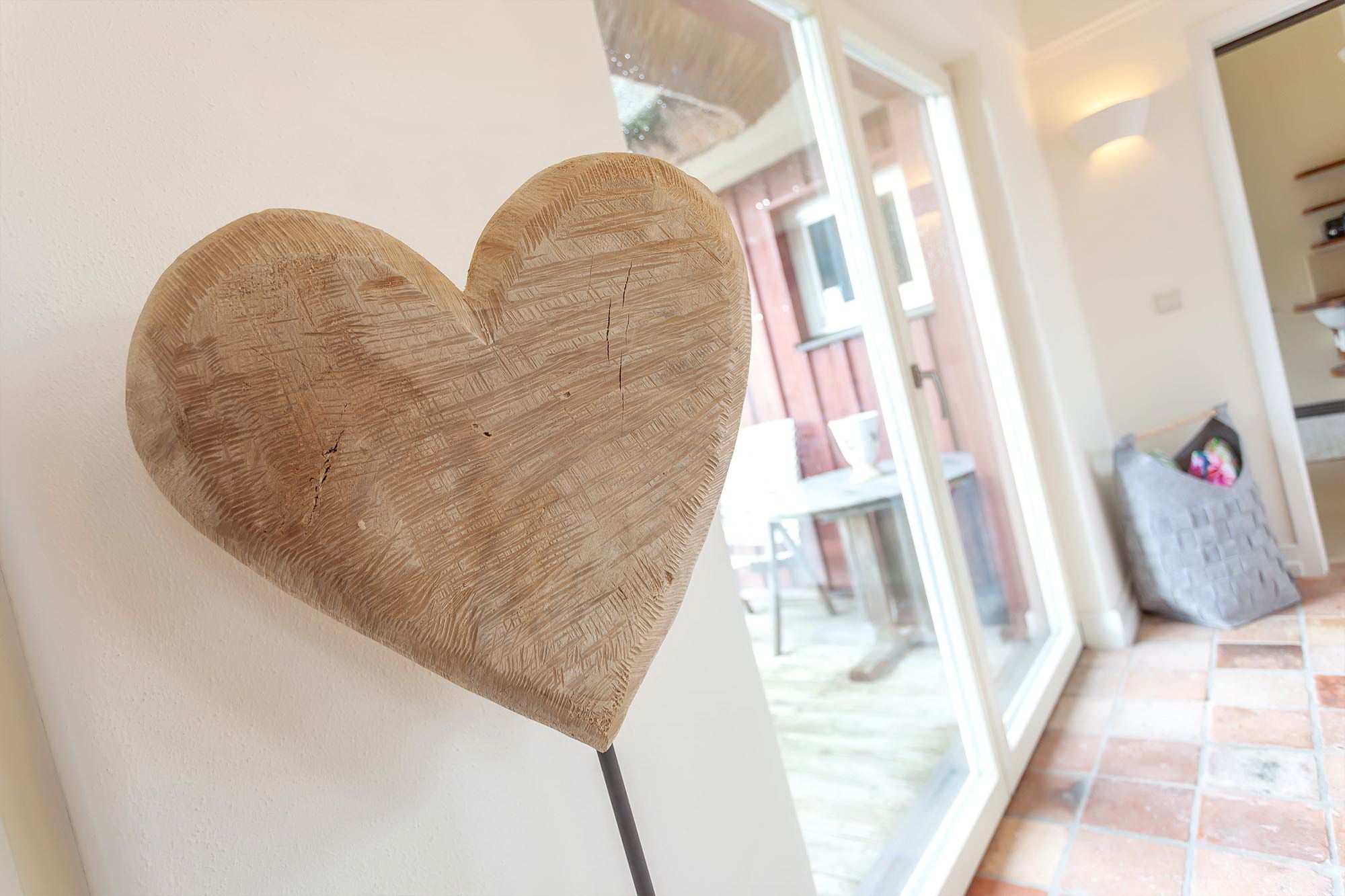 Das Ferienhaus Das Reet mit rund 108 qm Wohnfläche und 1405 qm Grundstücksfläche, verfügt über ein großzügigen Wohn-und Essbereich mit offenen Kamin. Das Highlight der komplett ausgestatteten Küche sind der Falcon Range Cooker mit Induktion und der Side by Side Kühlschrank. Das Haus besticht mit einen weiträumigen Ensuite-Bad, separaten WC und Bidet, sowie einer finnischen Sauna mit Blick ins Grüne. Das Ensuite-Bad bietet einen direkten Zugang zur Aussendusche, die Ihnen nach dem Saunieren zu Ihrer Verfügung steht.