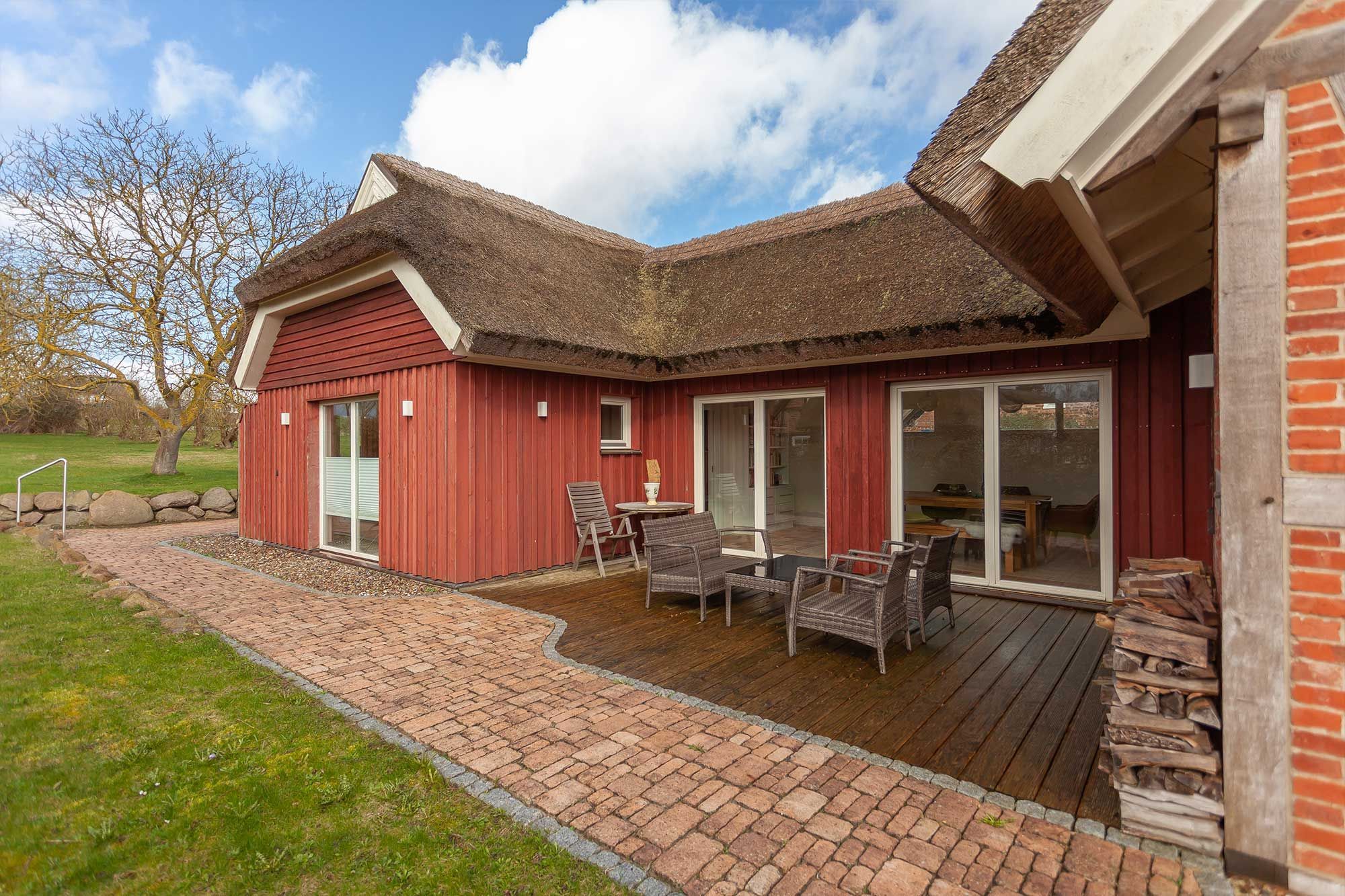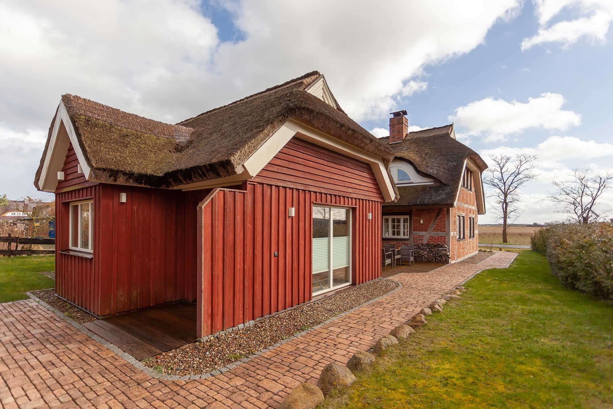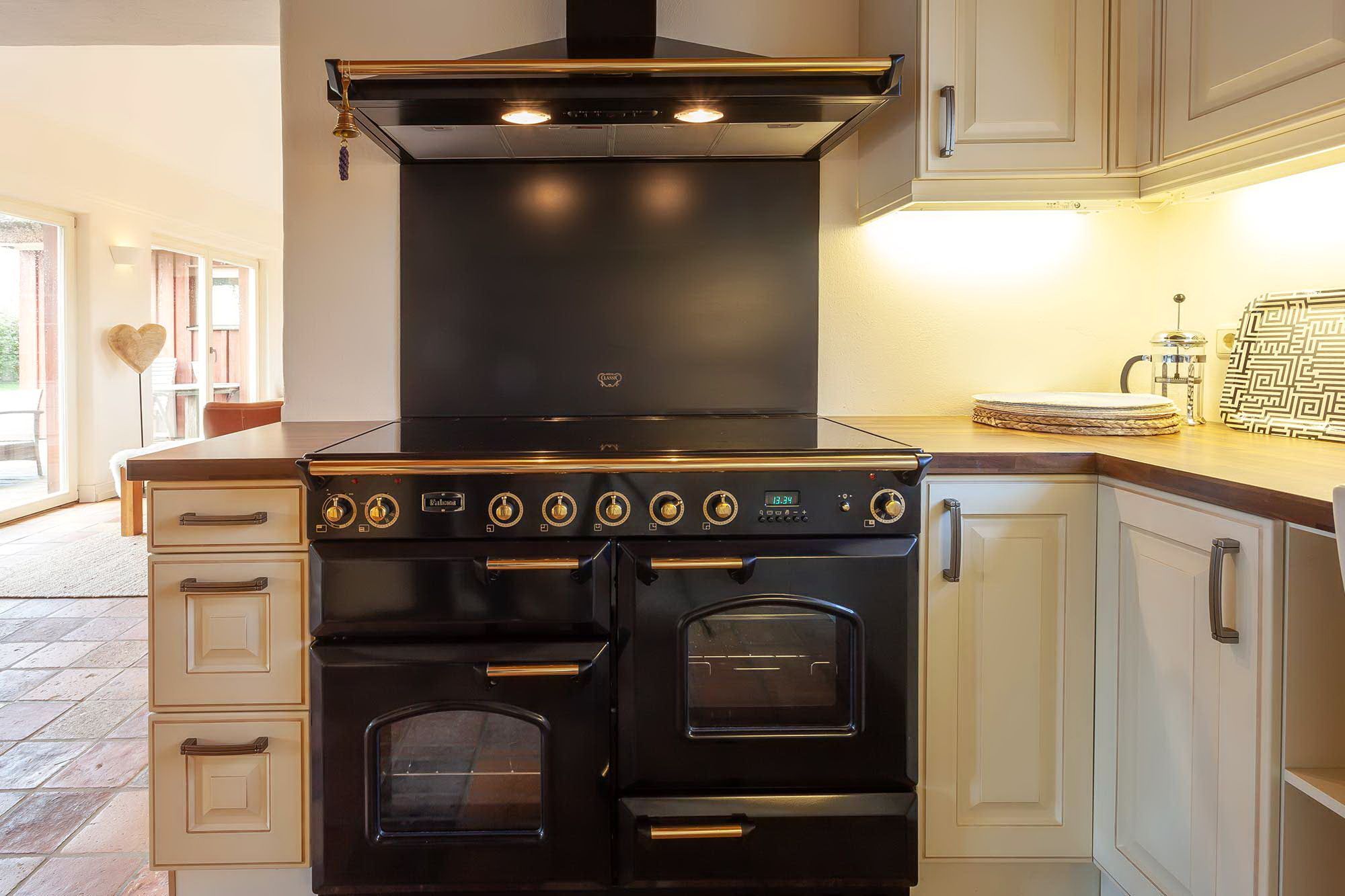 Das Ferienhaus Das Reet mit rund 108 qm Wohnfläche und 1405 qm Grundstücksfläche, verfügt über ein großzügigen Wohn-und Essbereich mit offenen Kamin. Das Highlight der komplett ausgestatteten Küche sind der „Falcon Range Cooker“ mit Induktion und der Side by Side Kühlschrank. Das Haus besticht mit einen weiträumigen Ensuite-Bad, separaten WC und Bidet, sowie einer finnischen Sauna mit Blick ins Grüne. Das Ensuite-Bad bietet einen direkten Zugang zur Aussendusche, die Ihnen nach dem Saunieren zu Ihrer Verfügung steht.