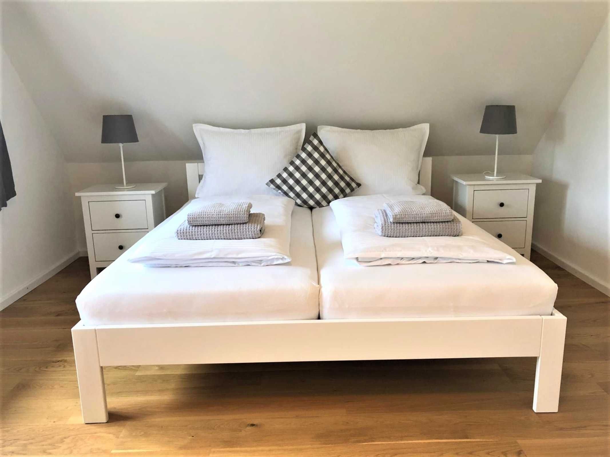 Pro Woche: 1 Duschtuch/pro Person, 1 Handtuch/pro Person, 2 Duschvorleger, 4 Gästehandtücher,