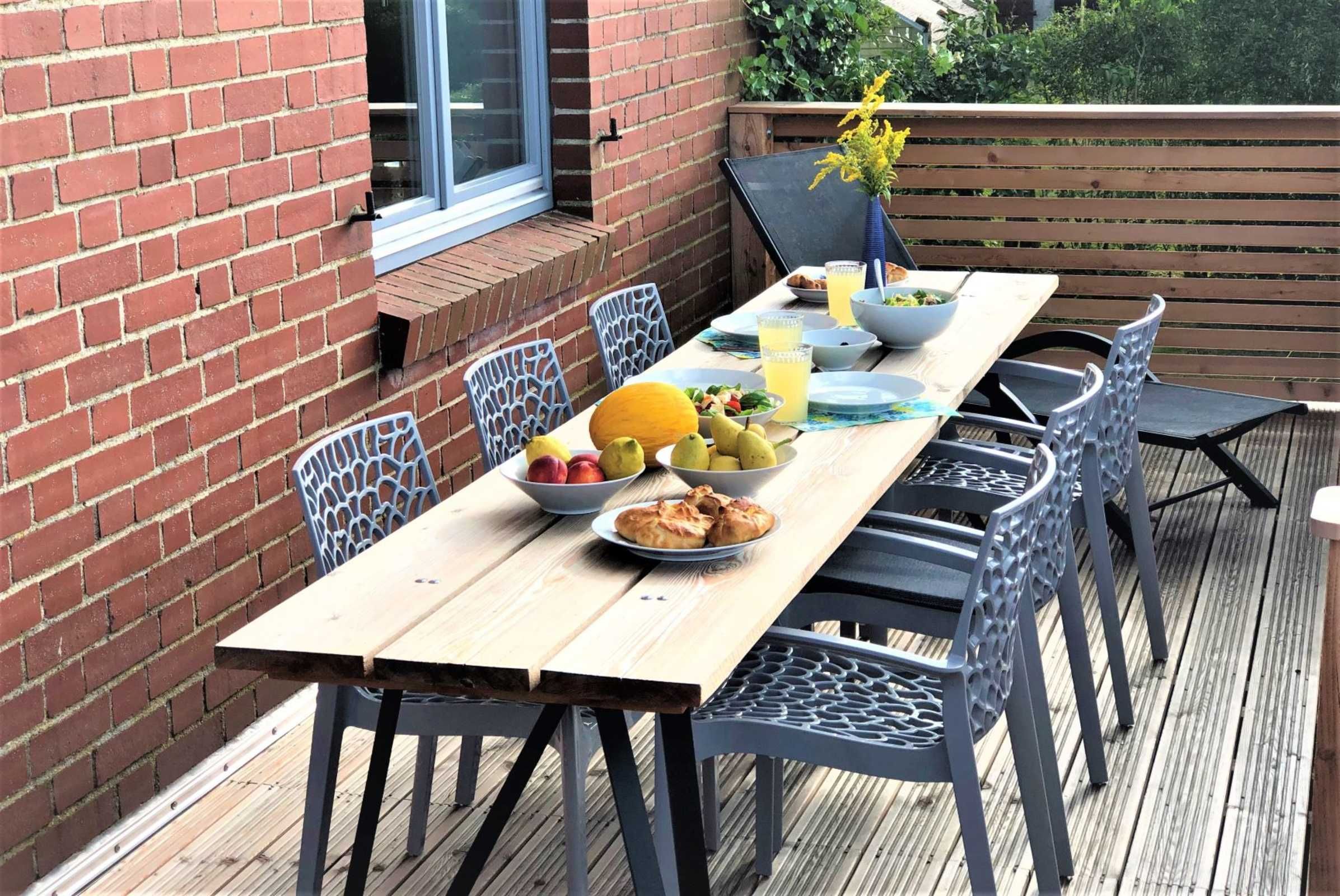 Sie haben direkten Zugang vom Wohnbereich in den Garten und auf den großen Balkon, welche zum Entspannen und Verweilen einladen. Hier können Sie den Tag bei einem Glas Wein oder gutem Essen ausklingen lassen.