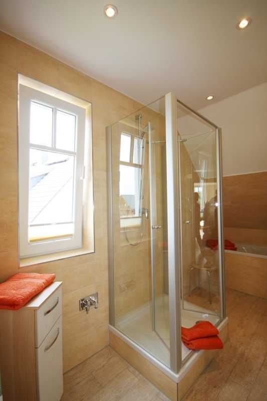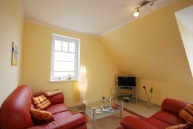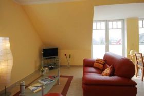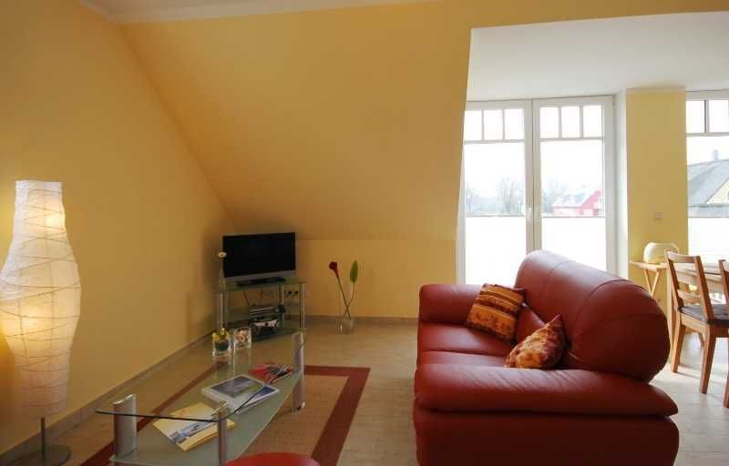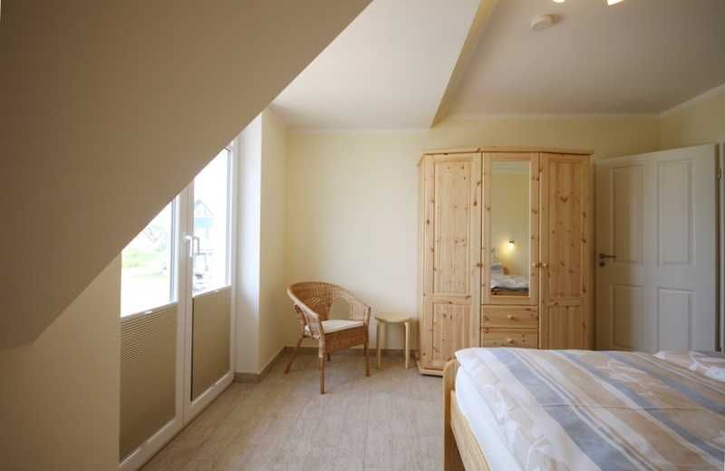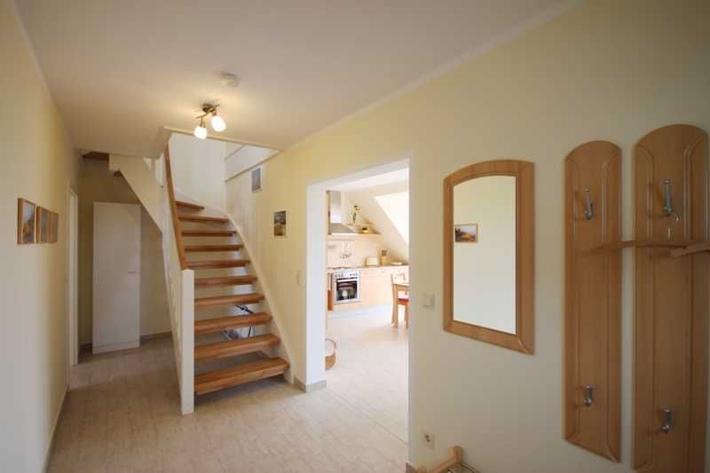 Die familienfreundlich ausgestattete Ferienwohnung im Obergeschoss verfügt über drei Zimmer, einen Kamin, einen sonnigen Balkon sowie Zugang zum Saunablockhaus im Garten und liegt nur etwa 250 m vom Ostseestrand entfernt.