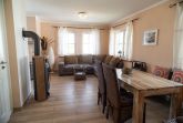 Die voll ausgestattete Einbauküche beinhaltet einen Kühlschrank mit Gefrierfach, einen Backofen und einen Geschirrspüler. Selbstverständlich stehen Ihnen auch eine Kaffeemaschine, ein Wasserkocher, ein Toaster und eine Mikrowelle zur Verfügung. Der Essbereich lädt mit einem großen Esstisch, zwei Stühlen und einer bequemen Sitzecke zu gemeinsamen Mahlzeiten und geselligen Spielabenden ein.