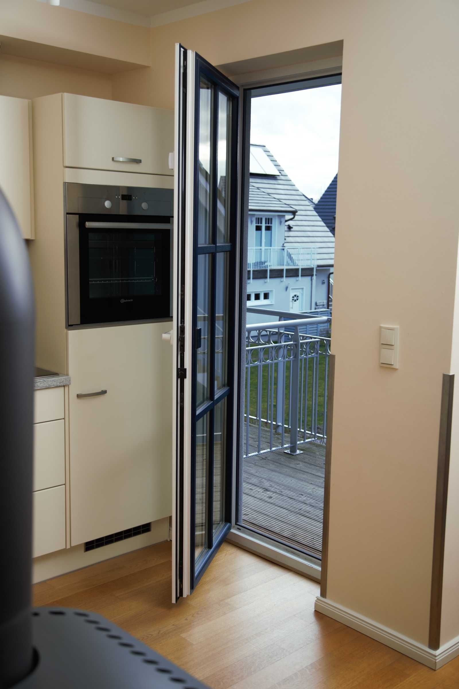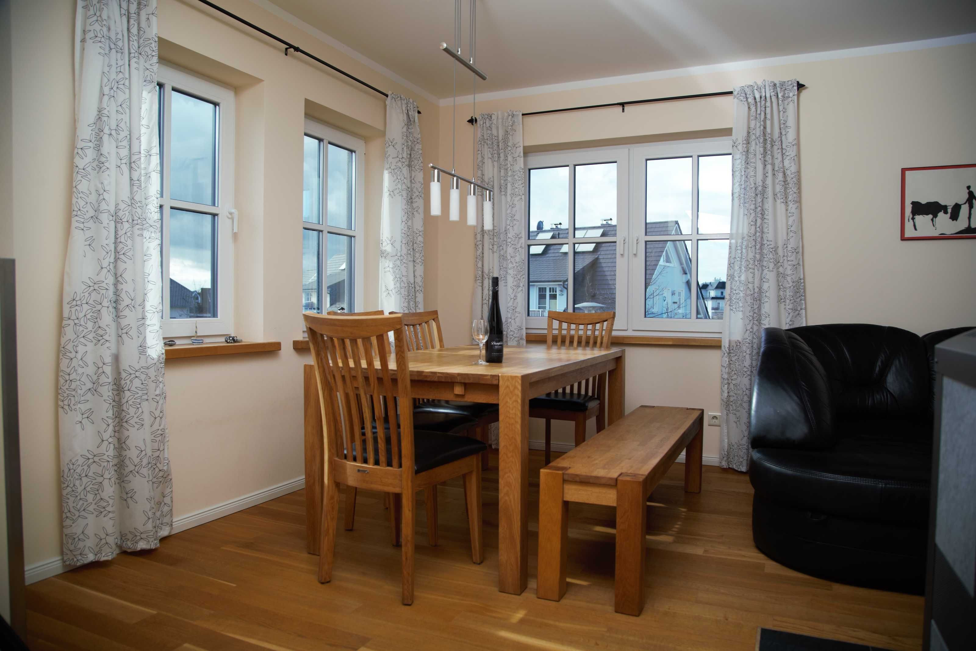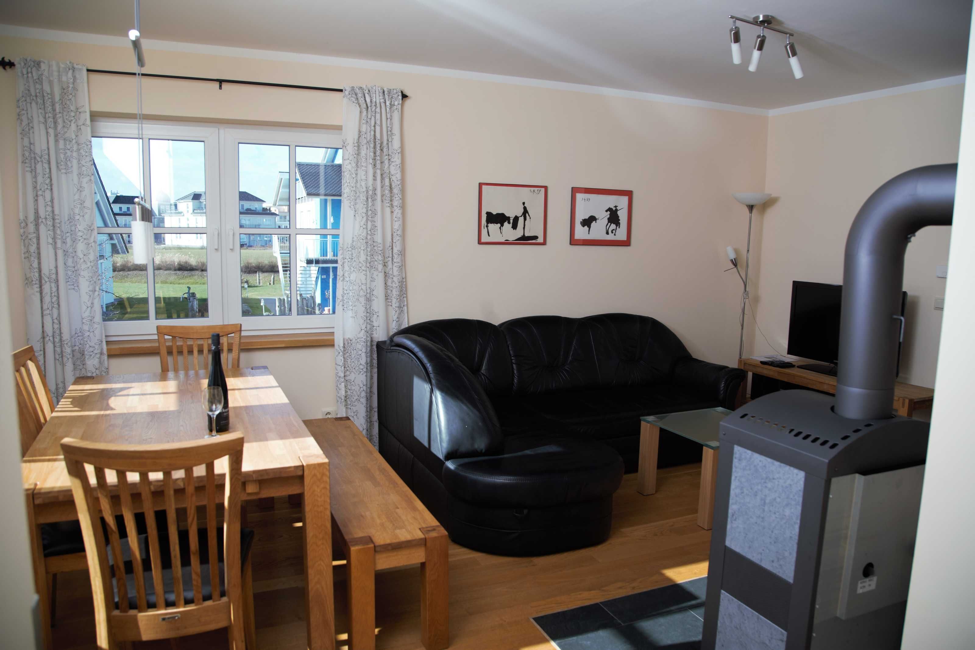 Das offene Wohn-/ Esszimmer empfängt Sie mit einem rustikalem Kaminofen (Brennholz muss selbst organisiert werden), einer ausziehbarer Eckcouch und einem großem Esstisch mit Stühlen und Sitzbank . Ein Flatscreen-TV und ein Musikradio gehören zum technischen Zubehör des Raums. Die Einbauküche ist voll ausgestattet mit Geschirrspüler, Kühl-/Gefrierkombi, Ceranfeld, Backofen, Kaffeemaschine, Wasserkocher und Toaster. Das Bad besticht mit einer ebenerdigen Dusche. Ein kleiner separater Abstellraum bietet Platz für Ihre Koffer und andere Mitbringsel.