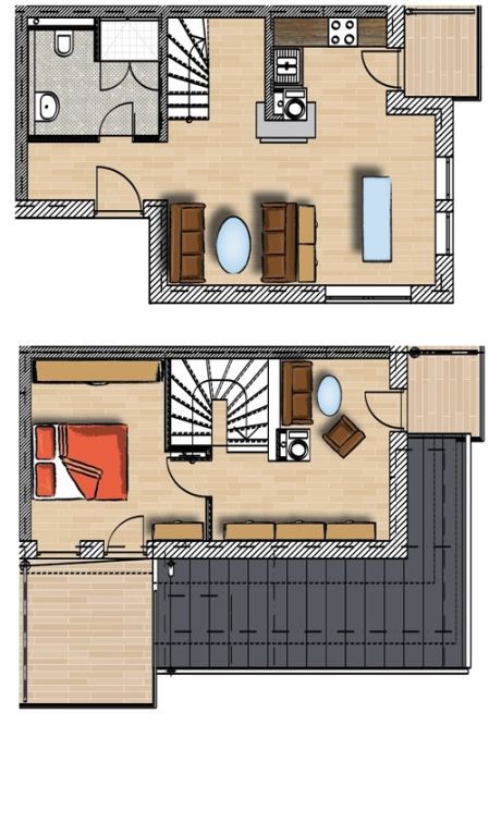 Ein großes Schlafzimmer mit Doppelbett sowie ein kleines Schlafzimmer mit Einzelbett und ausklappbarem Schlafsessel sorgen für süße Träme. Ein geräumiger Kleiderschrank verschafft zusätzlichen Stauraum. Wäscheset, Kinderreisebett und Kinderhochstuhl können kostenpflichtig zugebucht werden.