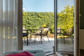 Terrasse und Balkon zum Nordwesten (Zugang vom Wohnraum bzw. Kinderzimmer) mit Haffblick.