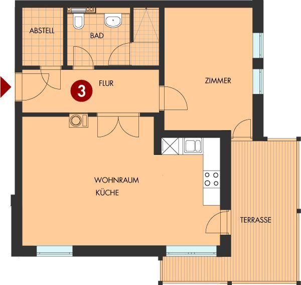Sonnige Zwei-Zimmer-Wohnung im Erdgeschoss und nur 80 Meter vom Strand