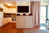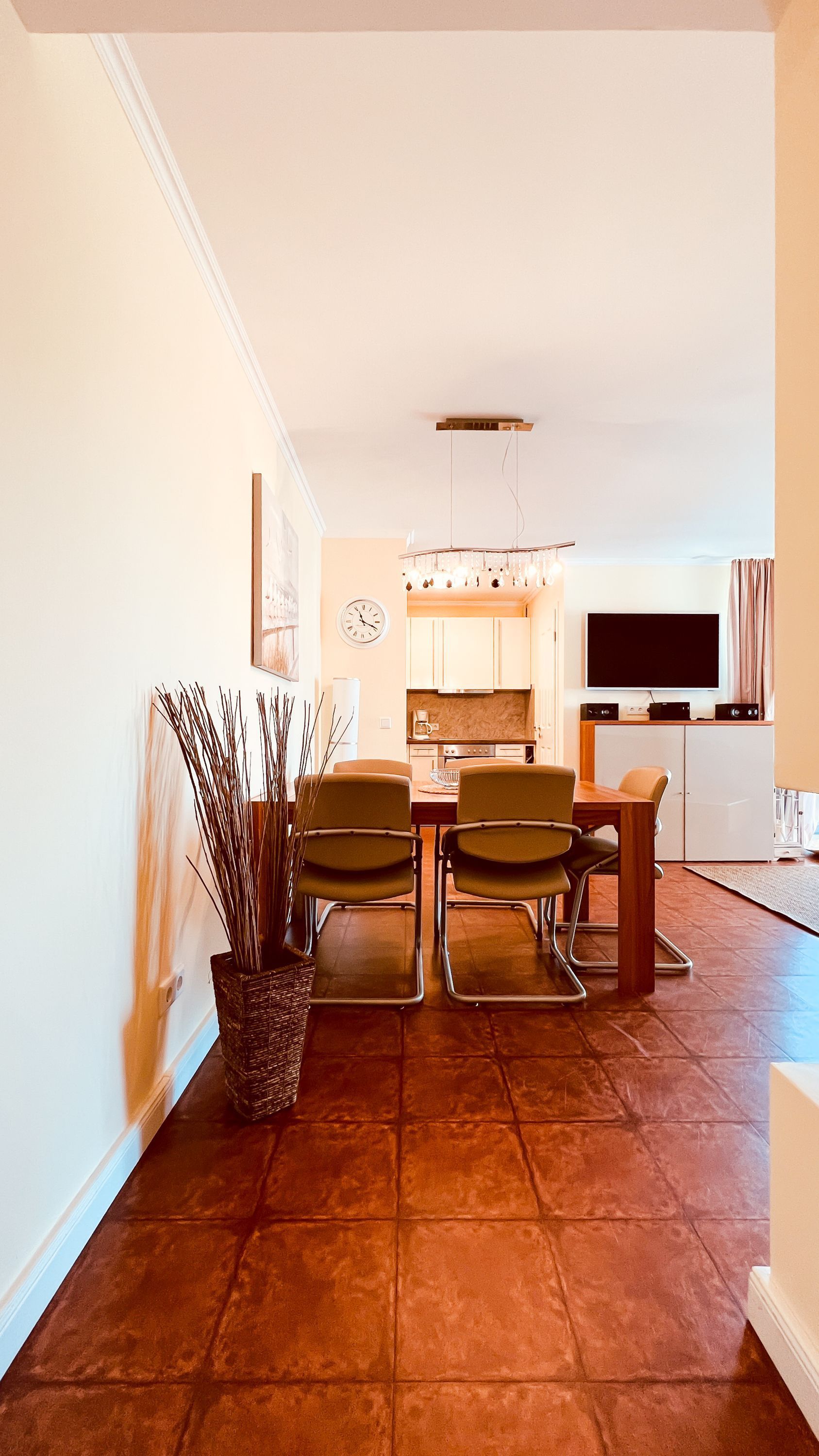 Der kombinierte Wohn-/ Essbereich besticht mit einer gemütlichen Leder-Schlafcouch und einem stimmungsvollen Gas- Kamin. Ein großzügiger Esstisch mit Stühlen lädt zu gemeinsamen Mahlzeiten und Spieleabenden ein. Für die mediale Unterhaltung stehen ein TV- Gerät und ein Radio für Sie bereit. In der offenen Einbauküche haben Sie alles, was zum Zubereiten von vollwertigen Mahlzeiten notwendig ist. Einen Geschirrspüler, Kühlschrank, inklusive Gefrierfach, Kaffeemaschine, Wasserkocher, Toaster, Mikrowelle und diverse Kochgeräte. Mit einem großen Doppelbett (getrennte Matratzen) und einem hohen Kleiderschrank empfängt Sie einer der Schlafräume. Das zweite Schlafzimmer ist mit zwei Einzelbetten (als Doppelbett hergerichtet/ getrennte Matratzen) und ebenfalls einem hohen Kleiderschrank eingerichtet. Das Badezimmer besticht mit einer ebenerdigen Dusche. Angrenzend befindet sich noch ein separates Gäste-WC. Auf den charmanten Eckbalkon (Süd-West-Ausrichtung) gelangen Sie durch den Wohnbereich. Von hier aus können Sie einen Blick auf die blaue Ostsee werfen. In allen Räumen sorgt eine Fußbodenheizung für gemütliche Wärme. In der Wohnung sorgt eine zusätzliche Abstellgelegenheit für reichlich Stauraum. Zur Wohnung gehören zudem ein kostenfreier Tiefgaragenstellplatz und eine Abstellmöglichkeit für Fahrräder. Bitte beachten Sie die Durchfahrtshöhe von max. 1,90 m der Tiefgarage. Mit einem Personenaufzug gelangen Sie von der Tiefgarage aus direkt zu Ihrer Wohnung. Im Erdgeschoss der Wohnung befindet sich ein gekennzeichneter Abstellbereich für Kinderwagen. Hier noch einige Hinweise: Es handelt sich um eine Nichtraucherwohnung. Haustiere sind nicht gestattet. Wäschesets, Kinderreisebett und Kinderhochstuhl können kostenpflichtig zugebucht werden. Eine Waschmaschine und ein Trockner stehen im separaten Hauswirtschaftsraum im Untergeschoss der Villa zu Ihrer Verfügung (gegen Gebühr / 1,00 € Münzen). Sichern Sie sich einen der begehrten Strandkörbe nur ein paar Meter entfernt von den rauschenden Wellen der Ostsee (Anfang Mai - Ende August) und buchen Sie jetzt zu besonderen Konditionen (12,00 € pro Tag oder 75,00 € pro Woche.)