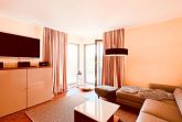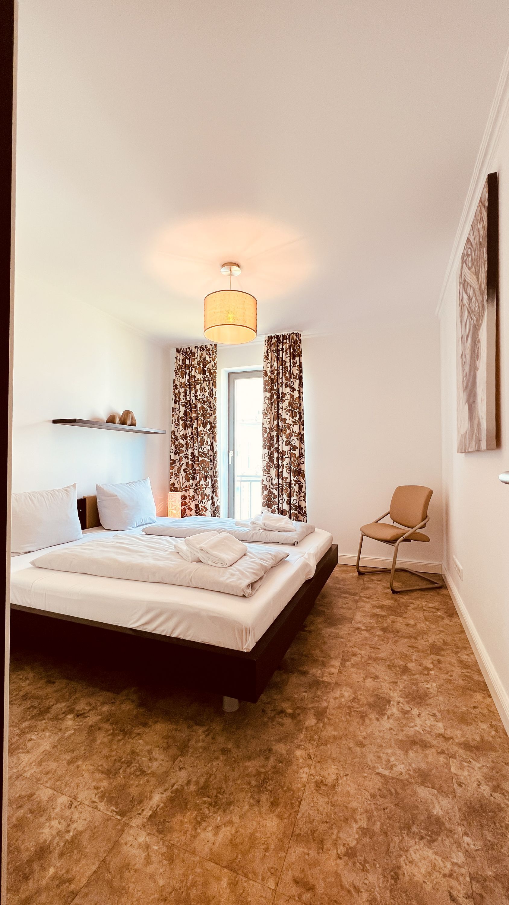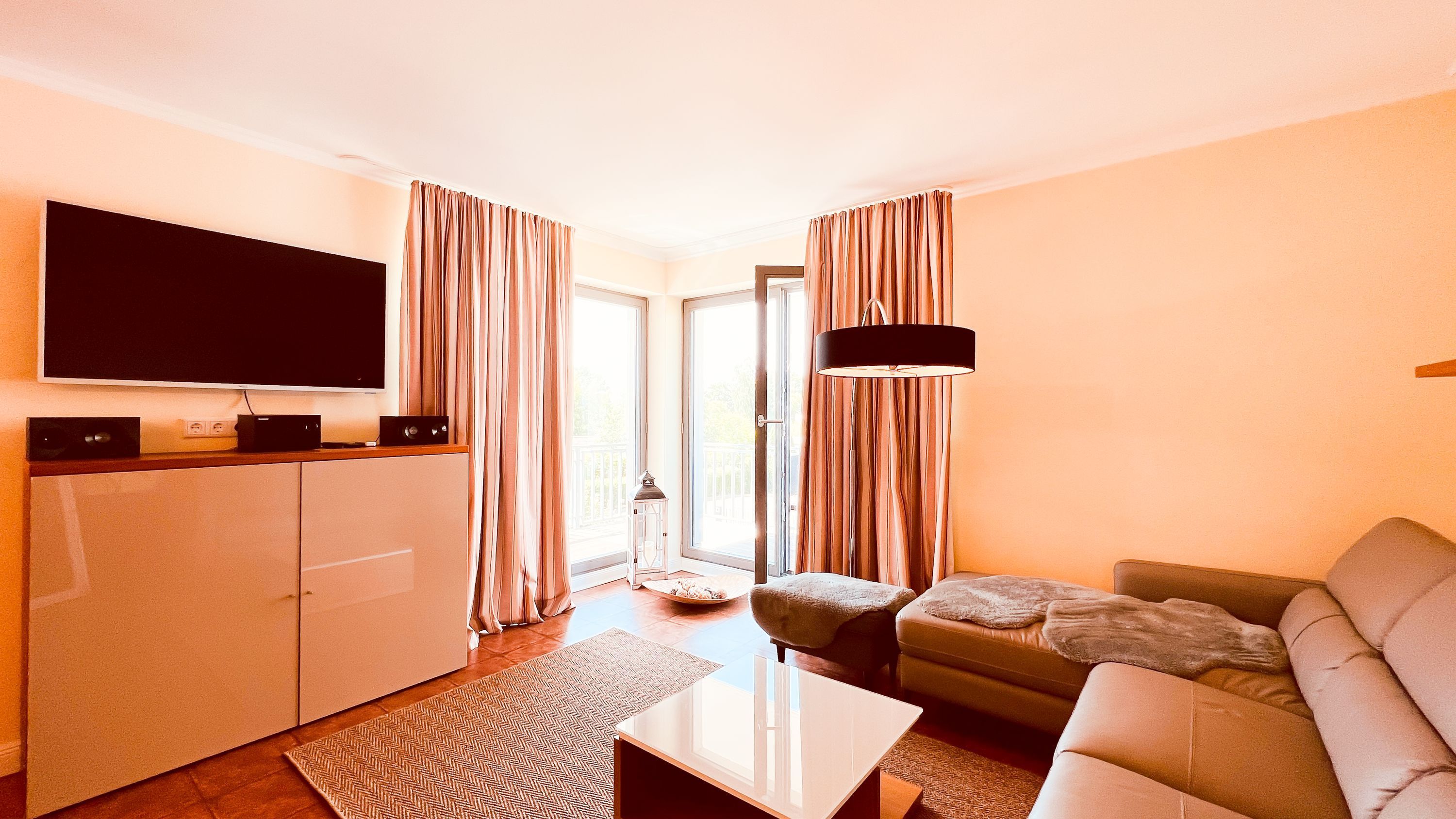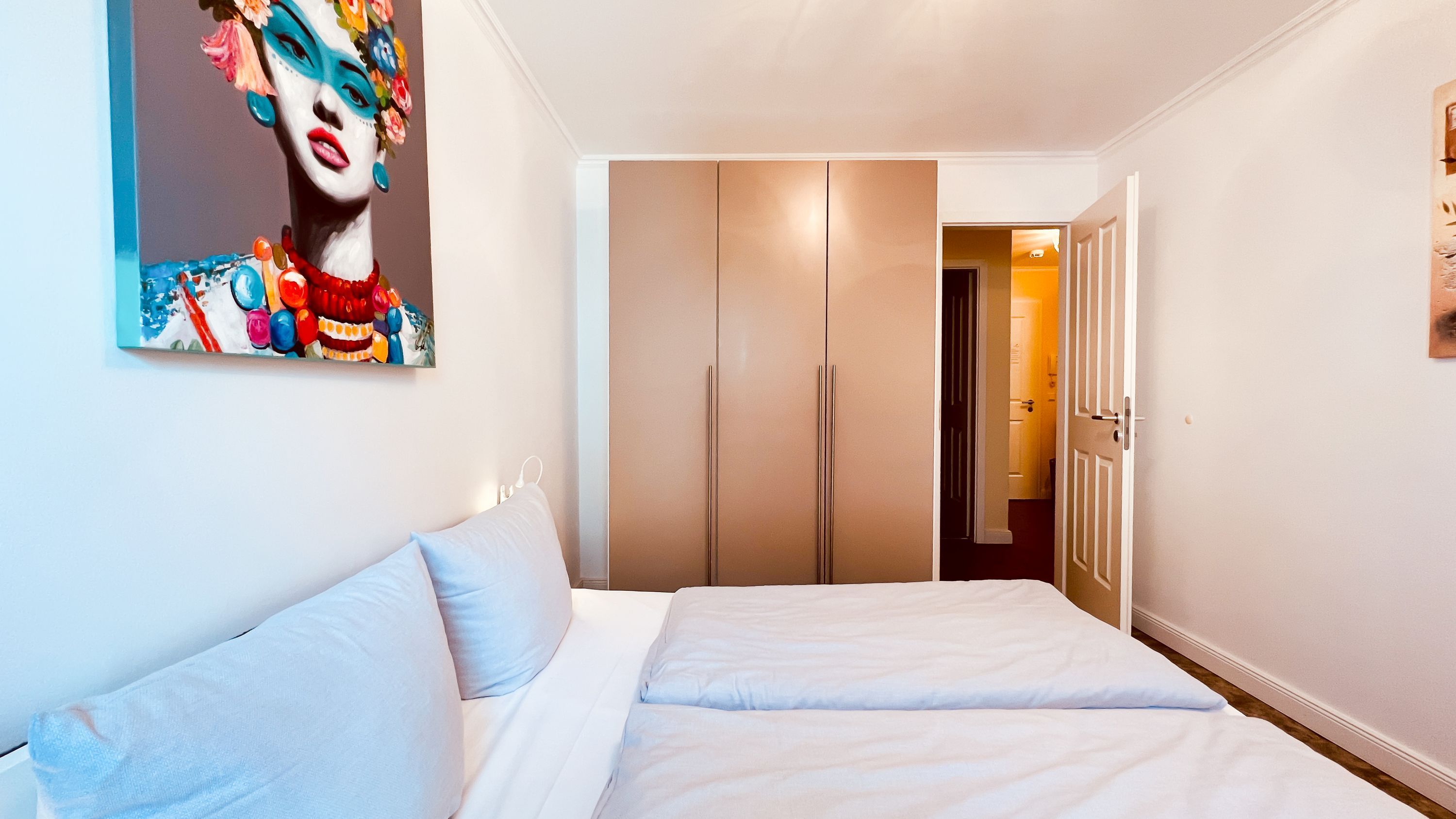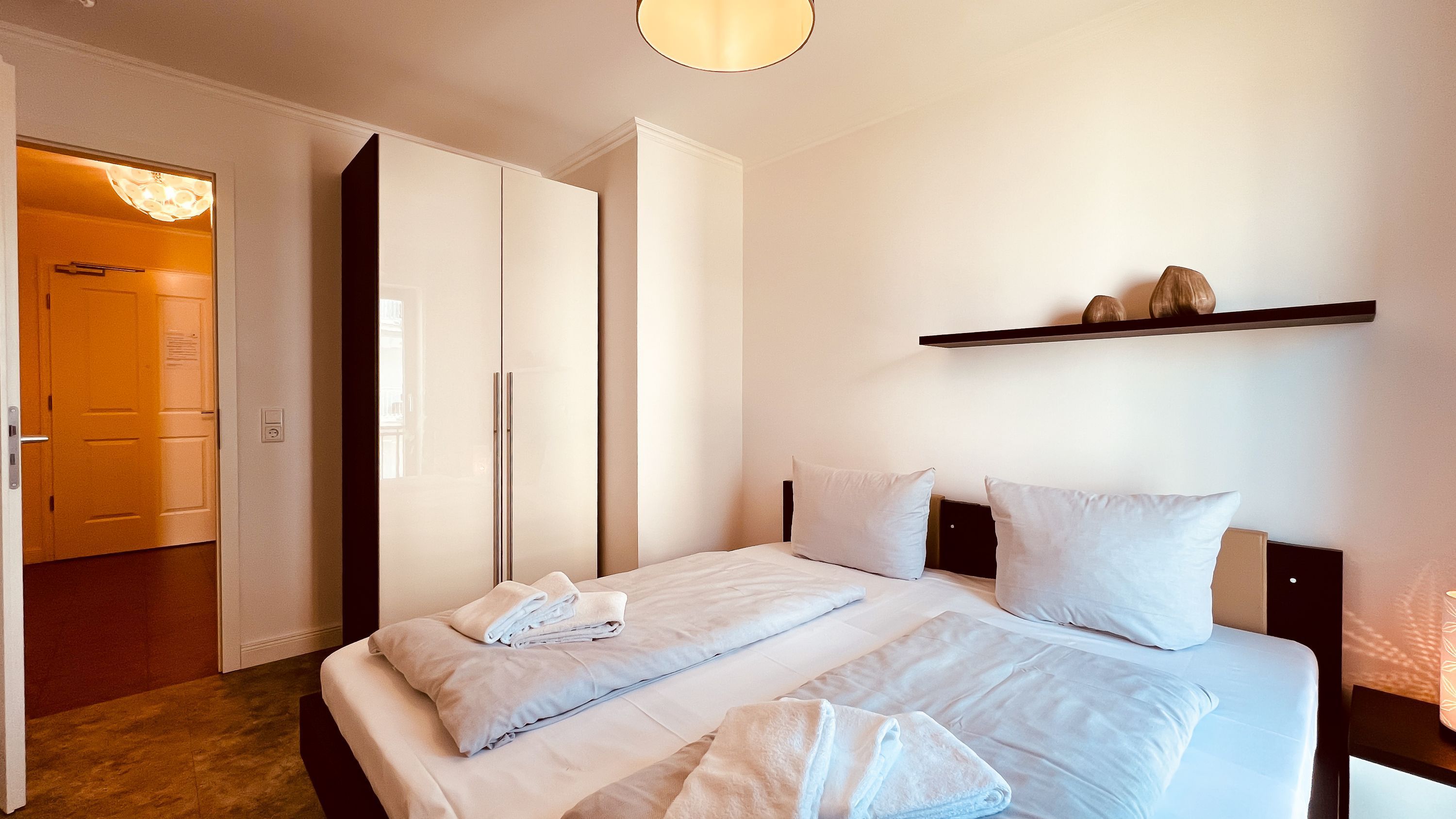 Der kombinierte Wohn-/ Essbereich besticht mit einer gemütlichen Leder-Schlafcouch und einem stimmungsvollen Gas- Kamin. Ein großzügiger Esstisch mit Stühlen lädt zu gemeinsamen Mahlzeiten und Spieleabenden ein. Für die mediale Unterhaltung stehen ein TV- Gerät und ein Radio für Sie bereit. In der offenen Einbauküche haben Sie alles, was zum Zubereiten von vollwertigen Mahlzeiten notwendig ist. Einen Geschirrspüler, Kühlschrank, inklusive Gefrierfach, Kaffeemaschine, Wasserkocher, Toaster, Mikrowelle und diverse Kochgeräte. Mit einem großen Doppelbett (getrennte Matratzen) und einem hohen Kleiderschrank empfängt Sie einer der Schlafräume. Das zweite Schlafzimmer ist mit zwei Einzelbetten (als Doppelbett hergerichtet/ getrennte Matratzen) und ebenfalls einem hohen Kleiderschrank eingerichtet. Das Badezimmer besticht mit einer ebenerdigen Dusche. Angrenzend befindet sich noch ein separates Gäste-WC. Auf den charmanten Eckbalkon (Süd-West-Ausrichtung) gelangen Sie durch den Wohnbereich. Von hier aus können Sie einen Blick auf die blaue Ostsee werfen. In allen Räumen sorgt eine Fußbodenheizung für gemütliche Wärme. In der Wohnung sorgt eine zusätzliche Abstellgelegenheit für reichlich Stauraum. Zur Wohnung gehören zudem ein kostenfreier Tiefgaragenstellplatz und eine Abstellmöglichkeit für Fahrräder. Bitte beachten Sie die Durchfahrtshöhe von max. 1,90 m der Tiefgarage. Mit einem Personenaufzug gelangen Sie von der Tiefgarage aus direkt zu Ihrer Wohnung. Im Erdgeschoss der Wohnung befindet sich ein gekennzeichneter Abstellbereich für Kinderwagen. Hier noch einige Hinweise: Es handelt sich um eine Nichtraucherwohnung. Haustiere sind nicht gestattet. Wäschesets, Kinderreisebett und Kinderhochstuhl können kostenpflichtig zugebucht werden. Eine Waschmaschine und ein Trockner stehen im separaten Hauswirtschaftsraum im Untergeschoss der Villa zu Ihrer Verfügung (gegen Gebühr / 1,00 Euro Münzen). Sichern Sie sich einen der begehrten Strandkörbe nur ein paar Meter entfernt von den rauschenden Wellen der Ostsee (Anfang Mai - Ende August) und buchen Sie jetzt zu besonderen Konditionen (12,00 Euro pro Tag oder 75,00 Euro pro Woche.)