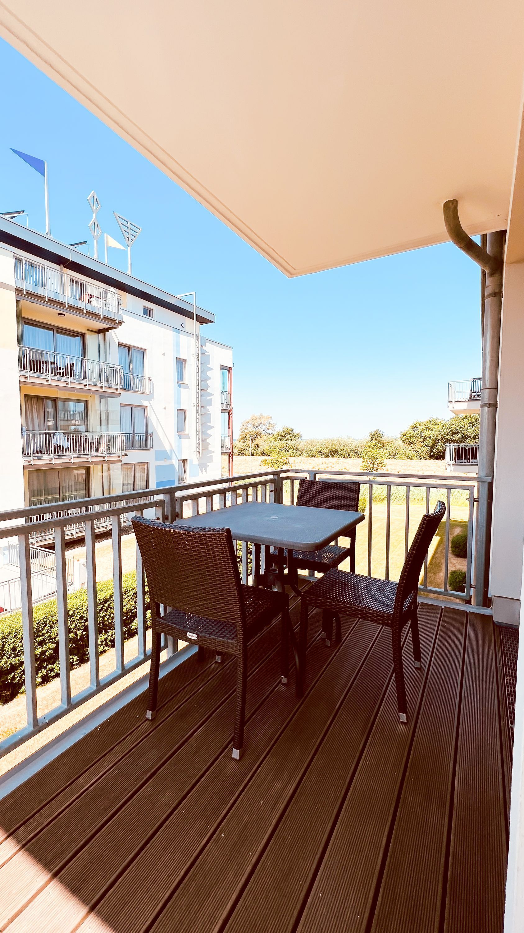 Strandnahe 3- Raumwohnung für max. 4 Erwachsene und 1 Kleinkind, 2 Schlafzimmer, Balkon mit Meerblick im 1. OG.