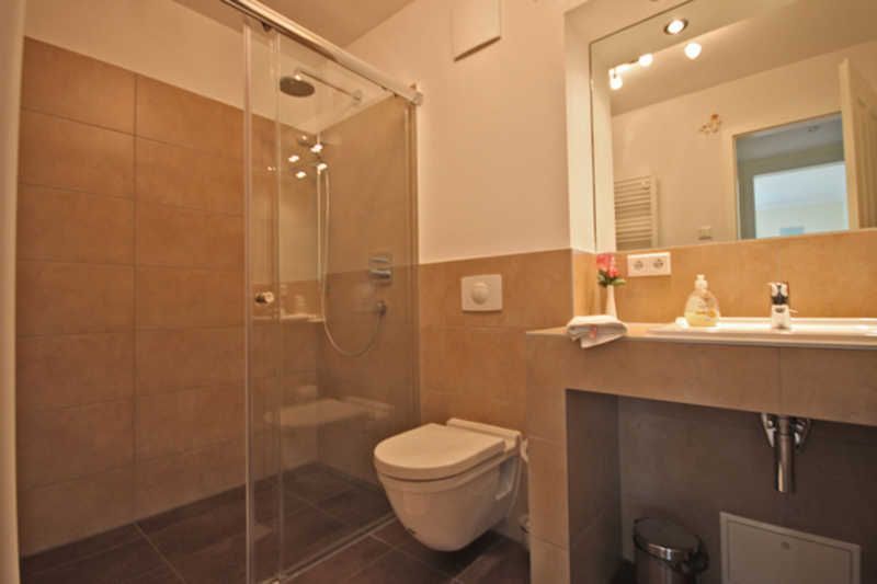 Gönnen Sie sich einen unvergesslichen Urlaub in Wohnung 17 der Villa Deichgraf. Die Ferienunterkunft wurde liebevoll und mit hochwertigen Möbeln für bis zu vier Personen eingerichtet. Der Wohnraum verfügt über eine umfangreiche technische Ausstattung mit TV- Gerät sowie DVD-, CD- Player und Radio. Die bequeme Leder-Sitzecke, mehrere Massivholzmöbel aus Erle und ein großer Esstisch mit entsprechenden Stühlen bestimmen die gemütliche Atmosphäre des Raums. Der Kamin dient lediglich dekorativen Zwecken, ist nicht funktionsfähig und darf nicht betrieben werden. In der voll ausgestatteten Einbauküche (Geschirrspüler, Mikrowelle, Cerankochfeld, Backofen, Dunstabzugshaube, Kühlschrank mit-Gefrierfach, Kaffeemaschine, Wasserkocher, Toaster und Eierkocher) lassen sich leckere Mahlzeiten zaubern. Die beiden Schlafzimmer empfangen Sie jeweils mit einem gemütlichen Doppelbett (7-Zonen Matratzen und verstellbarem Lattenrost) sowie Kleiderschrank und Garderobe. Ein Schlafzimmer ist zusätzlich mit einem an der Wand montierten TV- Gerät ausgestattet. Das elegante Duschbad besticht mit bodengleicher Dusche, Regenbrause (Raindance Air), großem Spiegel, Handtuchtrockner, Kosmetikspiegel und Fön. Angrenzend befindet sich ein weiteres separates Gäste-WC. Über den Wohnbereich gelangen Sie auf den Eck-Balkon in Süd-West-Ausrichtung mit Meerblick. Hier werden Sie, bei unbedecktem Himmel, von morgens bis abends durch Sonne verwöhnt. Das Gebäude liegt nur ca. 50 m vom Ostseestrand entfernt. Ein an die Küche angrenzender Abstellraum birgt weiteren Stauraum für Ihr Reisegepäck. Die dort gelagerten Haushaltsgeräte wie Staubsauger, Bodenwischer, Handfeger, Wäscheständer, Fußbank und Kindertoilettensitz, stehen bei Bedarf zur Verfügung. Eine Fußbodenheizung sorgt in allen Räumen für wohlige Wärme. Zur Wohnung gehören zudem ein kostenfreier Tiefgaragenstellplatz und eine Abstellmöglichkeit für Fahrräder. Bitte beachten Sie die Durchfahrtshöhe von max. 1,90 m der Tiefgarage. Mit einem Personenaufzug gelangen Sie von der Tiefgarage aus direkt zu Ihrer Wohnung. Im Erdgeschoss der Wohnung befindet sich ein gekennzeichneter Abstellbereich für Kinderwagen. Noch einige Hinweise: Es handelt sich um eine Nichtraucherwohnung. Haustiere sind nicht erlaubt. In dieser Ferienwohnung wurde kein WLAN installiert. Wäschesets, Kinderreisebett und Kinderhochstuhl können kostenpflichtig zugebucht werden. Eine Waschmaschine und ein Trockner stehen im separaten Hauswirtschaftsraum im Untergeschoss der Villa zu Ihrer Verfügung (gegen Gebühr / 1,00 Euro Münzen). Für die vierte Person (ab 3 Jahre) wird ein Aufpreis in Höhe von 10,00 Euro/ÜN berechnet. Sichern Sie sich zusätzlich vorab einen der begehrten Strandkörbe nur ein paar Meter entfernt von den rauschenden Wellen der Ostsee (Anfang Mai - Ende August) und buchen Sie jetzt zu besonderen Konditionen (12,00 Euro pro Tag oder 75,00 Euro pro Woche).