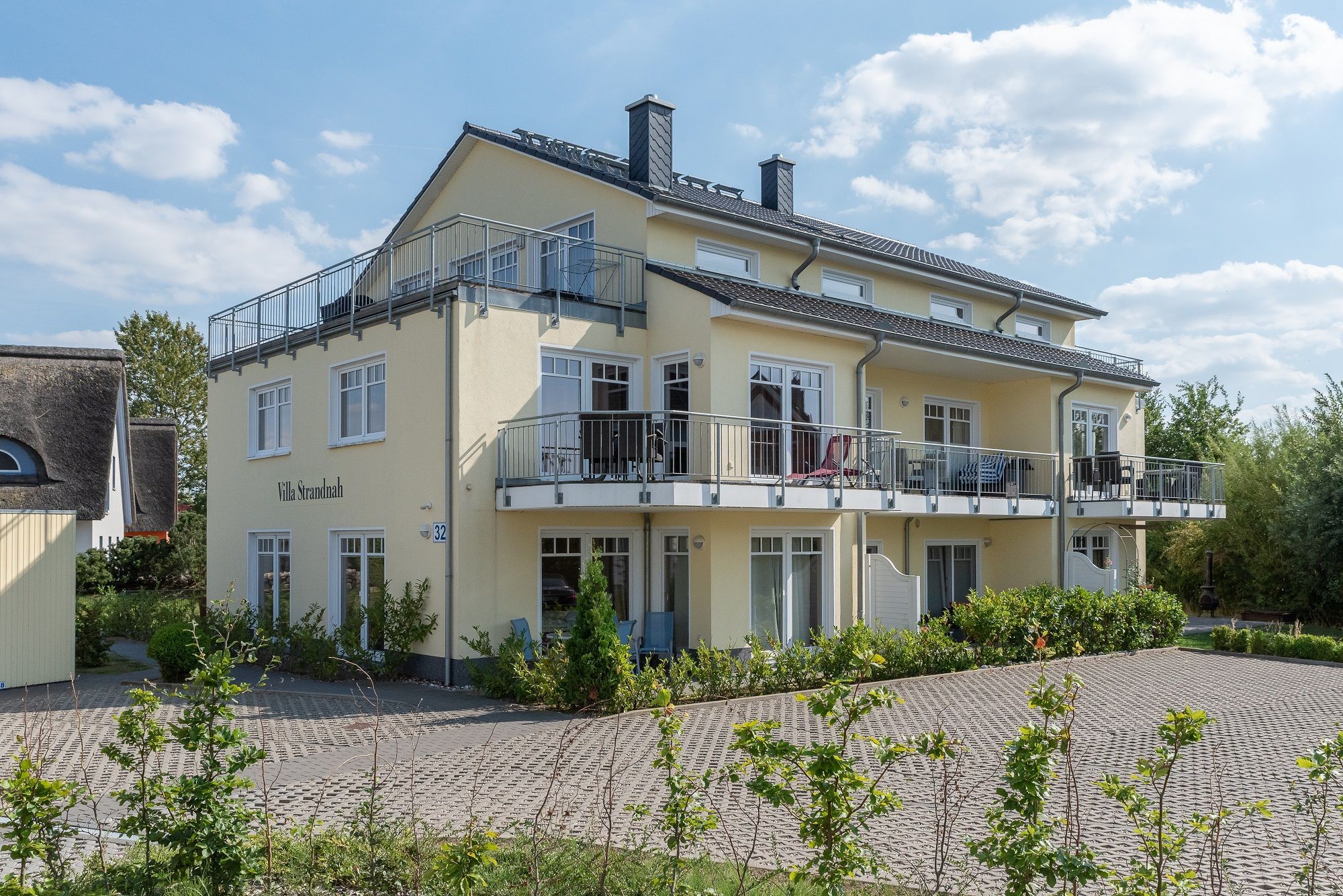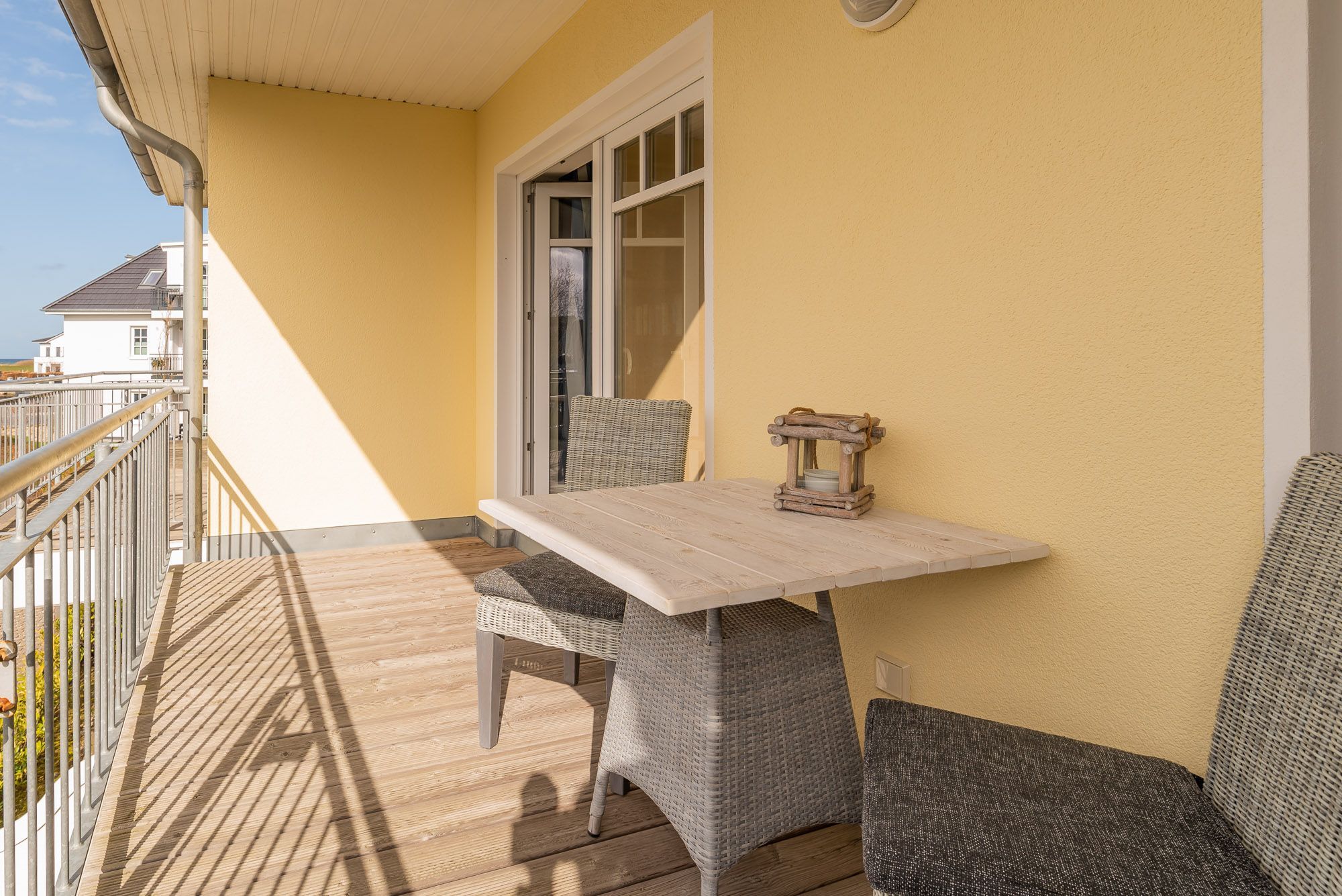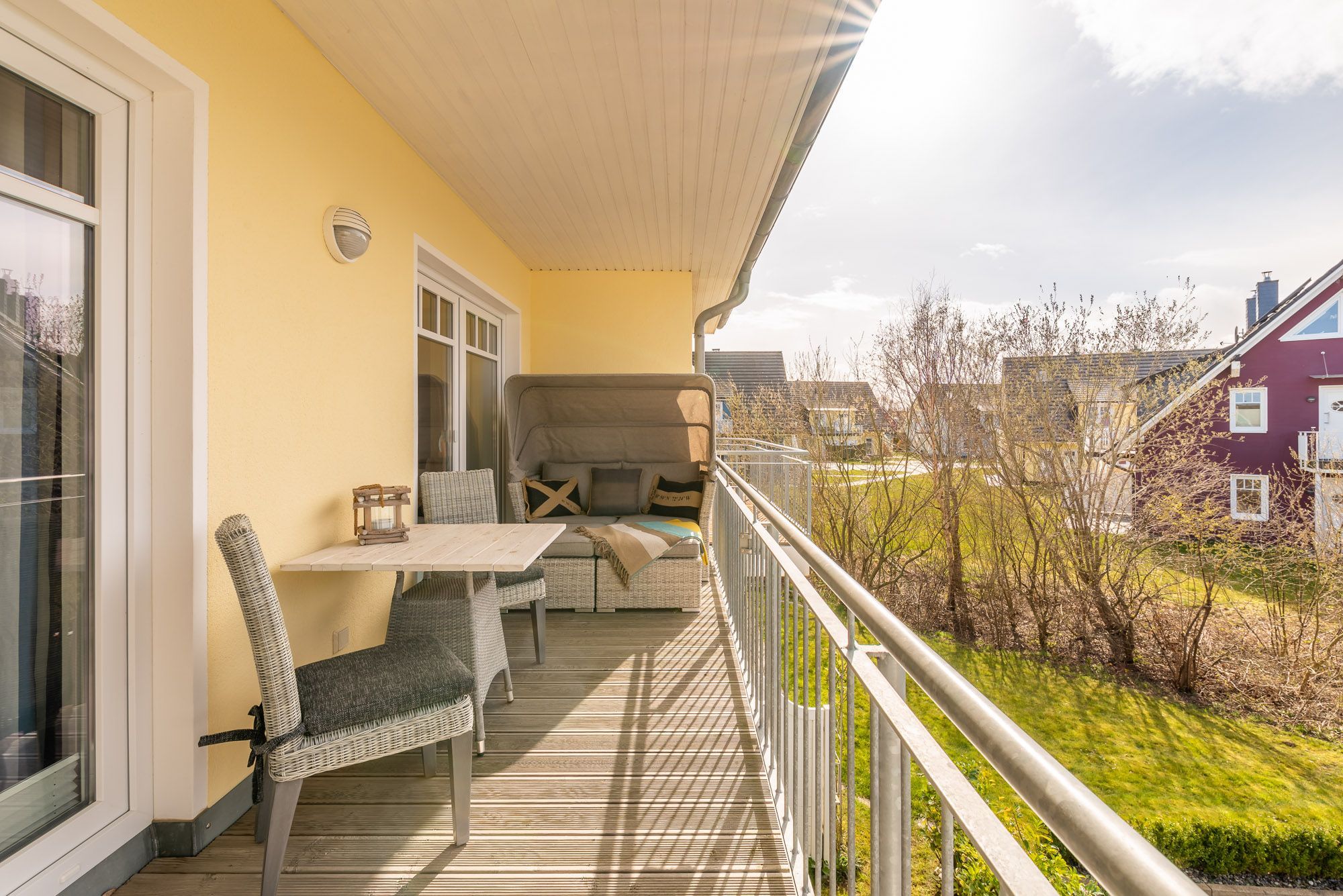 Sonnige 2-Zimmer-Wohnung im ersten Obergeschoss, weniger als 300 m vom schönen Ostseestrand entfernt - Balkon mit eingeschränktem Meerblick