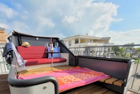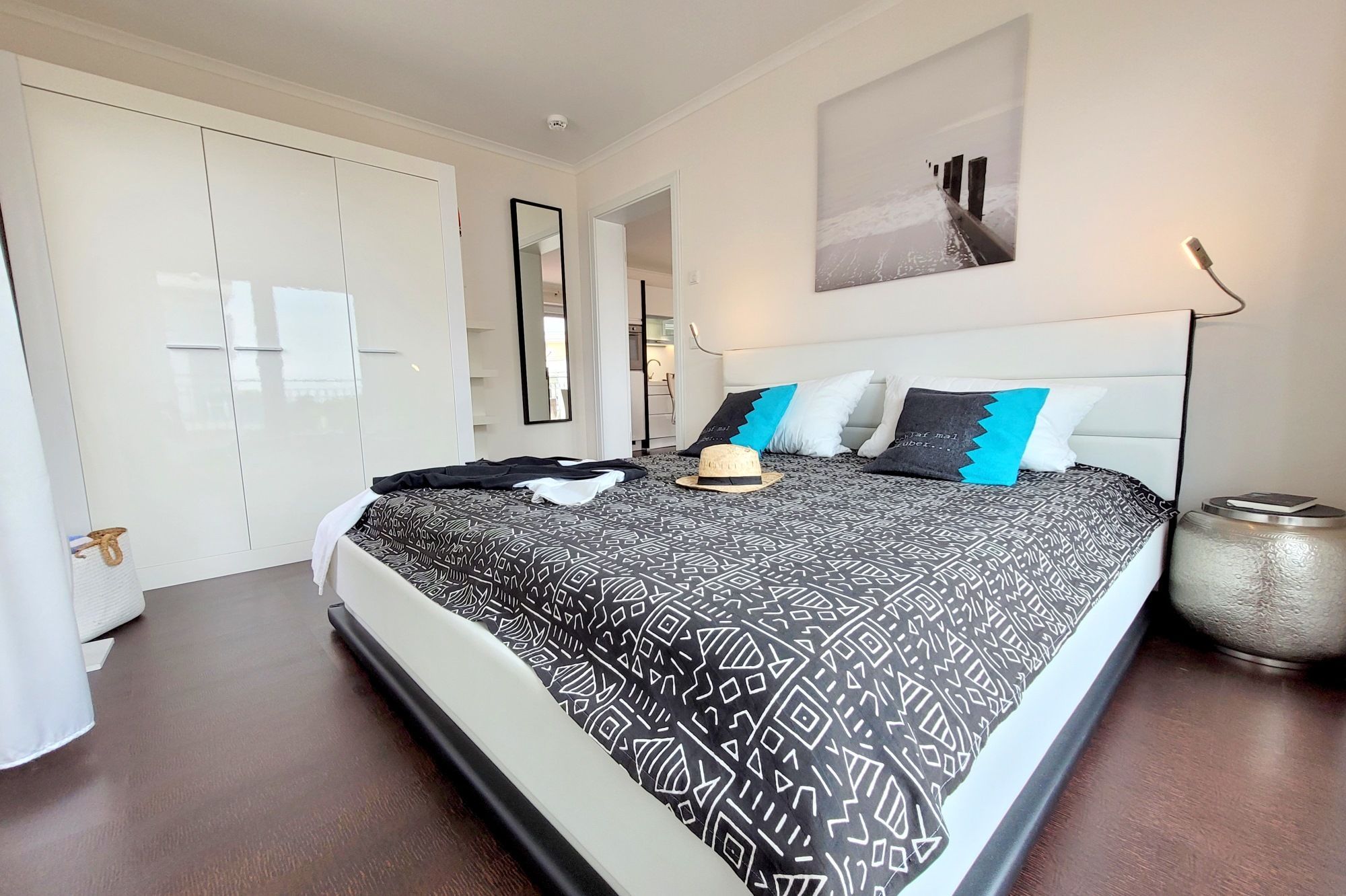 Der moderne, lichtdurchflutete Wohnraum empfängt Sie mit einer gemütlichen Leder-Ecksitzgruppe, einem Couchtisch sowie einem Flatscreen-TV mit Blu-ray- / DVD-Player und einer HiFi-Anlage (mit kabelloser Wiedergabe vom eigenen Smartphone/Tablet). Ein großer Tulip-Esstisch mit Stühlen lädt zu gemeinsamen Mahlzeiten ein. Die hochwertig eingerichtete Einbauküche ist voll ausgestattet mit Geschirrspüler, Kühlschrank, inklusive Gefrierfach, Backofen, Mikrowelle, Induktions-Kochfeld, Dunstabzugshaube, Kaffeemaschine, Wasserkocher und Toaster. Zwei modern eingerichtete Schlafzimmer empfangen Sie jeweils mit bequemem Doppelbett (hochwertige Kaltschaum-Matratzen/ getrennt 180 x 200 cm. Die Wohnung ist mit je 4 Sets an Standardbettdecken 135 x 200 cm und Komfort Bettdecken 155 x 220 cm ausgestattet. (Bitte beachten Sie: Für die Komfort Bettdecken kann keine Bettwäsche gestellt werden.) Ein raumhoher Kleiderschrank bietet ausreichend Platz für Ihr Gepäck. Eines der Schlafzimmer verfügt über einen eigenen Zugang zur Terrasse. Das andere ist mit einem Sound-System sowie einem angrenzenden Wannenbad ausgestattet. In der Unterkunft befindet sich zudem ein zweites Bad mit bodengleicher Walk-In Regendusche, großer Spiegelfront, Fön und einem Fenster, durch das Sie die Morgensonne begrüßt. Das einzigartige Penthouse-Highlight ist die 70 qm große Dachterrasse (Balkon) in Süd-West-Lage. Dort verwöhnt Sie die Sonnen den ganzen Tag. Neben einer Esstischgruppe und einem Sonnenschirm stehen Ihnen von März bis Oktober außerdem eine Chillout-Lounge und exklusiv der vermutlich größte Strandkorb zwischen Wismar und Warnemünde zur Verfügung. Von hier genießen Sie einen wunderschönen Blick auf die Ostsee. Bei gutem Wetter kann hier sogar unter freiem Himmel übernachtet werden! Bitte den Schlafsack und ein zusätzliches Laken (140 x 200 cm) nicht vergessen. Die Wohnung ist mit raumhohen Fenstern und Blindouts ausgestattet. Die Fußbodenheizung sorgt für wohlige Wärme in allen Räumen. Ein separater Abstellraum bietet Stauraum für Ihre Urlaubskleidung. Zu Ihrer Ferienwohnung gehört ein kostenfreier Tiefgaragenstellplatz. Bitte beachten Sie die Durchfahrtshöhe von max. 1,90 m. Der im Gebäude installierte Aufzug erleichtert den Transport der mitgebrachten Koffer. Über den Innenhof der Villa erreichen Sie den abschließbaren Fahrradraum sowie den angrenzenden Waschraum. Eine Waschmaschine und ein Trockner stehen zu Ihrer Verfügung (gegen Gebühr / 1,00 Euro Münzen). Im Erdgeschoss finden Sie eine Eisdiele und ein Restaurant. In der Nähe außerdem ein Kaufmannsladen mit Backshop, diversen Strand- und Souvenirartikeln sowie einen Fahrradverleih. Der beliebte Ostsee-Rad-Wanderweg beginnt vor der Haustür. Bei herrlichen Fahrradtouren erreichen Sie die bekannten Seebäder Heiligendamm (3 km), Kühlungsborn (8 km), Nienhagen (4 km) und Warnemünde (13 km). Hier noch einige Hinweise: Es handelt sich um eine Nichtraucherwohnung. Es sind keine Haustiere erlaubt. Ab der dritten und vierten Person wird ein Aufpreis in Höhe von 10,00 Euro/ÜN pro Person berechnet. Wäscheset, Kinderreisebett und Kinderhochstuhl können kostenpflichtig zugebucht werden. Das kostenfreie WLAN in der Unterkunft ist ausschließlich für die Verwendung von Social Media und den Austausch von Bildern mit Familie und Freunden gedacht. Die Nutzung zum Streamen von Filmen ist nicht vorgesehen. Sichern Sie sich einen der begehrten Strandkörbe nur ein paar Meter entfernt von den rauschenden Wellen der Ostsee (Anfang Mai - Ende August) und buchen Sie jetzt zu besonderen Konditionen (12,00 Euro pro Tag oder 75,00 Euro pro Woche). Ab September 2025 finden Fassadenarbeiten an diesem Haus statt.