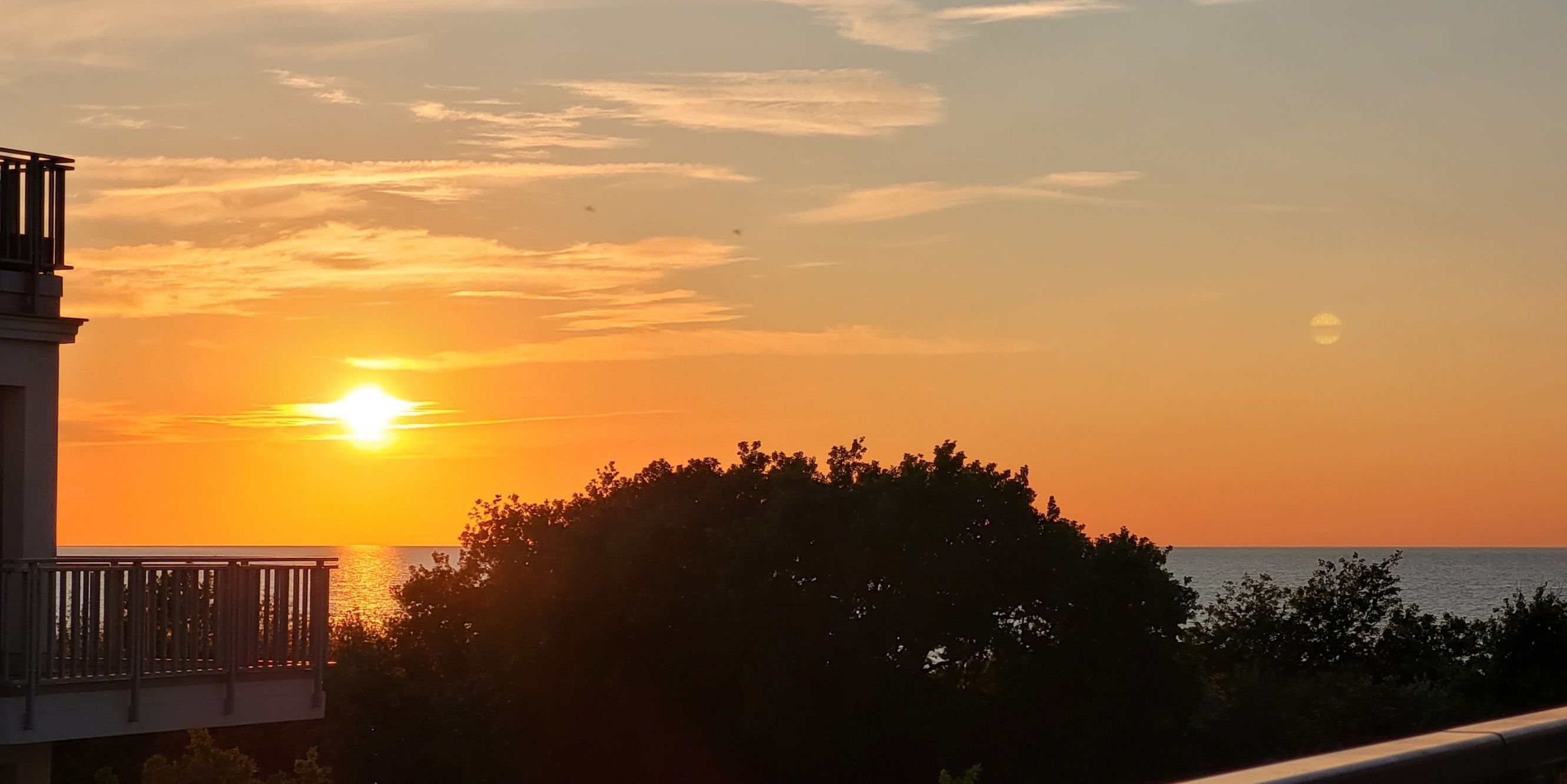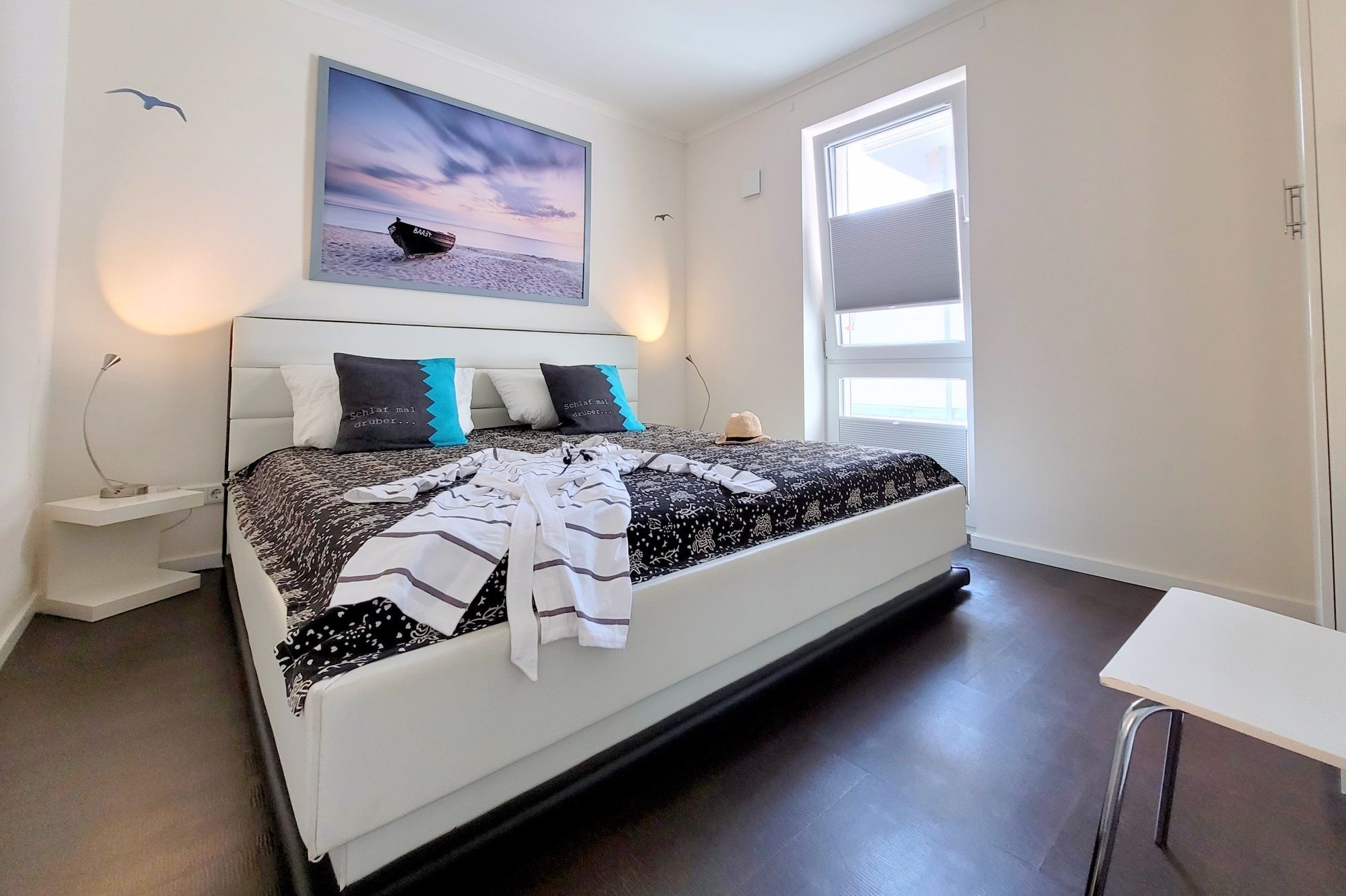 Der moderne, lichtdurchflutete Wohnraum empfängt Sie mit einer gemütlichen Leder-Ecksitzgruppe, einem Couchtisch sowie einem Flatscreen-TV mit Blu-ray- / DVD-Player und einer HiFi-Anlage (mit kabelloser Wiedergabe vom eigenen Smartphone/Tablet). Ein großer Tulip-Esstisch mit Stühlen lädt zu gemeinsamen Mahlzeiten ein. Die hochwertig eingerichtete Einbauküche ist voll ausgestattet mit Geschirrspüler, Kühlschrank, inklusive Gefrierfach, Backofen, Mikrowelle, Induktions-Kochfeld, Dunstabzugshaube, Kaffeemaschine, Wasserkocher und Toaster. Zwei modern eingerichtete Schlafzimmer empfangen Sie jeweils mit bequemem Doppelbett (hochwertige Kaltschaum-Matratzen/ getrennt 180 x 200 cm. Die Wohnung ist mit je 4 Sets an Standardbettdecken 135 x 200 cm und Komfort Bettdecken 155 x 220 cm ausgestattet. (Bitte beachten Sie: Für die Komfort Bettdecken kann keine Bettwäsche gestellt werden.) Ein raumhoher Kleiderschrank bietet ausreichend Platz für Ihr Gepäck. Eines der Schlafzimmer verfügt über einen eigenen Zugang zur Terrasse. Das andere ist mit einem Sound-System sowie einem angrenzenden Wannenbad ausgestattet. In der Unterkunft befindet sich zudem ein zweites Bad mit bodengleicher Walk-In Regendusche, großer Spiegelfront, Fön und einem Fenster, durch das Sie die Morgensonne begrüßt. Das einzigartige Penthouse-Highlight ist die 70 qm große Dachterrasse (Balkon) in Süd-West-Lage. Dort verwöhnt Sie die Sonnen den ganzen Tag. Neben einer Esstischgruppe und einem Sonnenschirm stehen Ihnen von März bis Oktober außerdem eine Chillout-Lounge und exklusiv der vermutlich größte Strandkorb zwischen Wismar und Warnemünde zur Verfügung. Von hier genießen Sie einen wunderschönen Blick auf die Ostsee. Bei gutem Wetter kann hier sogar unter freiem Himmel übernachtet werden! Bitte den Schlafsack und ein zusätzliches Laken (140 x 200 cm) nicht vergessen. Die Wohnung ist mit raumhohen Fenstern und Blindouts ausgestattet. Die Fußbodenheizung sorgt für wohlige Wärme in allen Räumen. Ein separater Abstellraum bietet Stauraum für Ihre Urlaubskleidung. Zu Ihrer Ferienwohnung gehört ein kostenfreier Tiefgaragenstellplatz. Bitte beachten Sie die Durchfahrtshöhe von max. 1,90 m. Der im Gebäude installierte Aufzug erleichtert den Transport der mitgebrachten Koffer. Über den Innenhof der Villa erreichen Sie den abschließbaren Fahrradraum sowie den angrenzenden Waschraum. Eine Waschmaschine und ein Trockner stehen zu Ihrer Verfügung (gegen Gebühr / 1,00 € Münzen). Im Erdgeschoss finden Sie eine Eisdiele und ein Restaurant. In der Nähe außerdem ein „Kaufmannsladen“ mit Backshop, diversen Strand- und Souvenirartikeln sowie einen Fahrradverleih. Der beliebte Ostsee-Rad-Wanderweg beginnt vor der Haustür. Bei herrlichen Fahrradtouren erreichen Sie die bekannten Seebäder Heiligendamm (3 km), Kühlungsborn (8 km), Nienhagen (4 km) und Warnemünde (13 km). Hier noch einige Hinweise: Es handelt sich um eine Nichtraucherwohnung. Es sind keine Haustiere erlaubt. Ab der dritten und vierten Person wird ein Aufpreis in Höhe von 10,00 €/ÜN pro Person berechnet. Wäscheset, Kinderreisebett und Kinderhochstuhl können kostenpflichtig zugebucht werden. Das kostenfreie WLAN in der Unterkunft ist ausschließlich für die Verwendung von Social Media und den Austausch von Bildern mit Familie und Freunden gedacht. Die Nutzung zum Streamen von Filmen ist nicht vorgesehen. Sichern Sie sich einen der begehrten Strandkörbe nur ein paar Meter entfernt von den rauschenden Wellen der Ostsee (Anfang Mai - Ende August) und buchen Sie jetzt zu besonderen Konditionen (12,00 € pro Tag oder 75,00 € pro Woche). Ab September 2025 finden Fassadenarbeiten an diesem Haus statt.