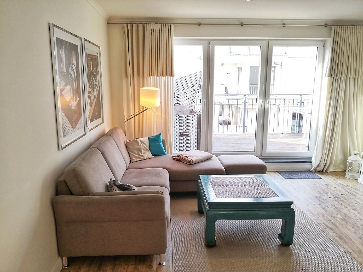 Der freundliche Wohn-/ Essbereich empfängt Sie mit einer gemütlichen Sitzecke, einem Flatscreen-TV, inklusive Stereoanlage und DVD-Player sowie einem großzügigen Esstisch. Die hochwertig eingerichtete Einbauküche ist voll ausgestattet mit Geschirrspüler, Kühlschrank mit Gefrierfach, Backofen, Kaffeemaschine, Wasserkocher, Toaster und Mikrowelle. Beide Schlafzimmer verfügen über ein Doppelbett und einen Kleiderschrank (Liegefläche 160 x 200 cm und 180 x 200 cm /getrennte Matratzen). Ein separater Abstellraum bietet Stauraum für Ihre Urlaubskleidung. In beiden Duschbädern finden Sie eine bodengleiche Dusche vor. Über den Wohnbereich und eines der Schlafzimmer haben Sie Zugang zur herrlichen Dachterrasse (Balkon). Durch die Süd-Westausrichtung können Sie den seitlichen Blick auf die Ostsee genießen. Der Strand befindet sich nur 50 Meter entfernt. Eine Fußbodenheizung sorgt für wohlige Wärme in allen Räumen. Zu Ihrer Ferienwohnung gehört ein kostenfreier Tiefgaragenstellplatz. Bitte beachten Sie die Durchfahrtshöhe von max. 1,90 m. Der im Gebäude installierte Aufzug erleichtert den Transport der mitgebrachten Koffer. Über den Innenhof der Villa erreichen Sie den abschließbaren Fahrradraum sowie den angrenzenden Waschraum. Eine Waschmaschine und ein Trockner stehen zu Ihrer Verfügung (gegen Gebühr /1,00 € Münzen). Noch einige Hinweise: Wäscheset, Kinderreisebett und Kinderhochstuhl können kostenpflichtig zugebucht werden. Es handelt sich um eine Nichtraucherwohnung. Es sind keine Haustiere erlaubt. Die Wohnung ist nicht für Allergiker geeignet. Das kostenfreie WLAN in der Unterkunft ist ausschließlich für die Verwendung von Social Media und den Austausch von Bildern mit Familie und Freunden gedacht. Die Nutzung zum Streamen von Filmen ist nicht vorgesehen. Sichern Sie sich einen der begehrten Strandkörbe nur ein paar Meter entfernt von den rauschenden Wellen der Ostsee (Anfang Mai - Ende August) und buchen Sie jetzt zu besonderen Konditionen (12,00 € pro Tag oder 75,00 € pro Woche). Ab September 2025 finden Fassadenarbeiten an diesem Haus statt.