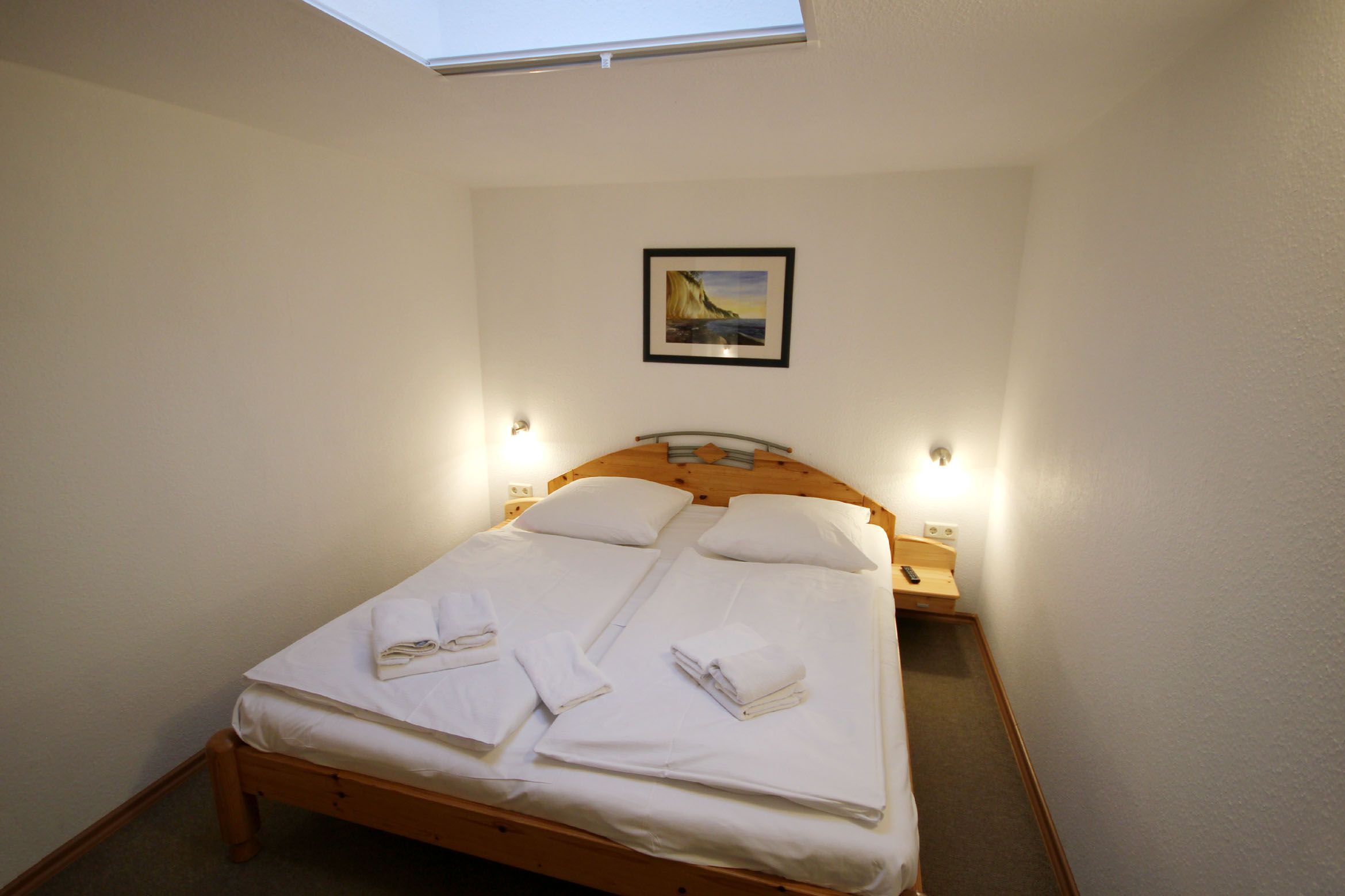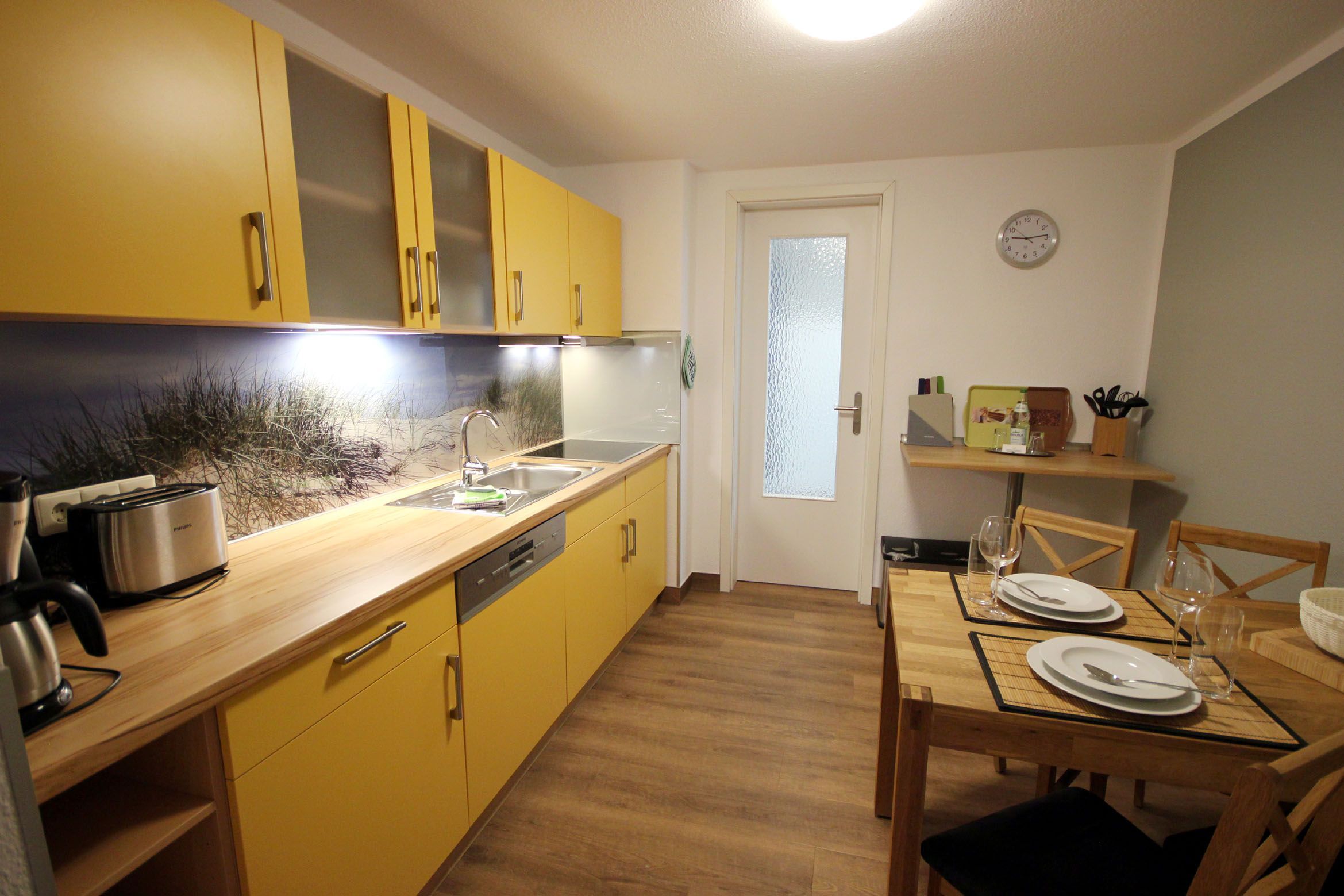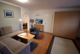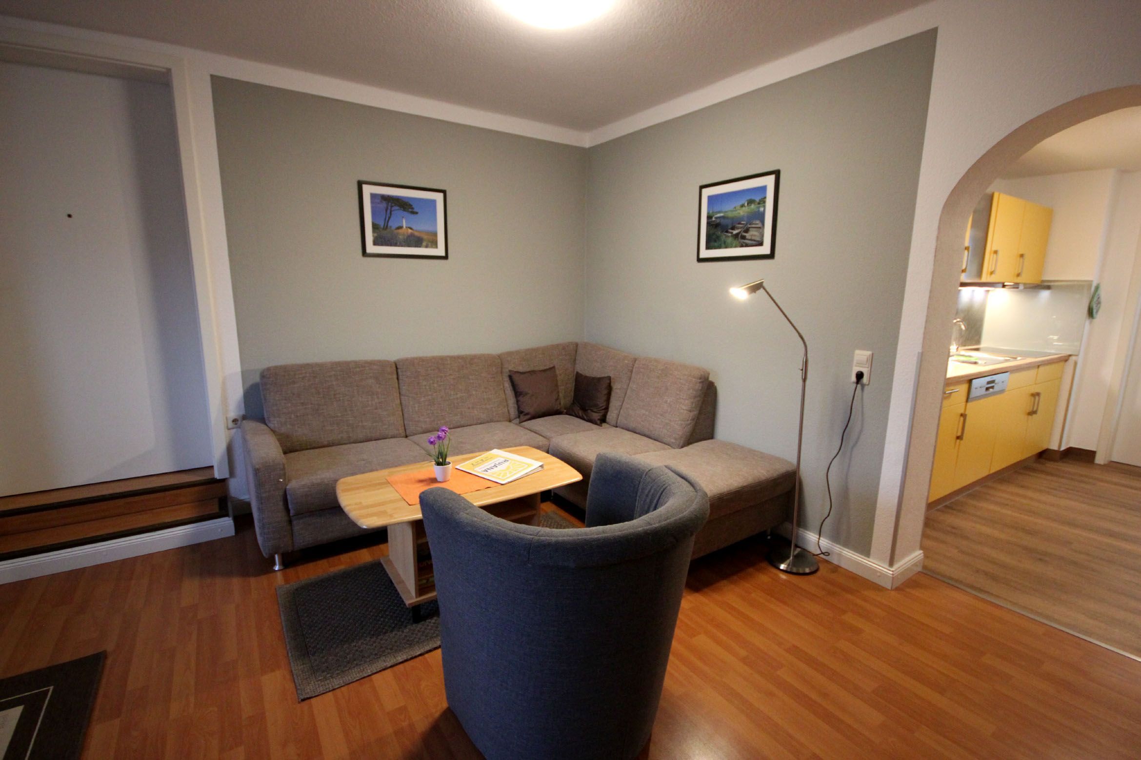Ihre 2-Raum Nichtraucherwohnung 64RB2 befindet sich im Erdgeschoss des Hauses. Sie besitzt eine Größe von ca. 45 qm und ist für max. 4 Personen belegbar sowie komplett eingerichtet. Das Appartement teilt sich auf in einen gemütlichen Wohnbereich mit bequemer Sitzecke, separate Küche, ein Schlafzimmer und ein Tageslichtbad. Neben dem schönen Wohnraum mit Flachbildfernseher, WLAN und Radio mit CD-Player ist der Schlafraum mit einem weiteren Flachbild-TV, einem Doppelbett, Kleiderschrank und Verdunklungsmöglichkeit ausgestattet. Das komfortable Schrankbett im Wohnbereich bietet Schlafmöglichkeit für die 3. und 4. Person. Die Küche mit Essplatz für 4 Personen ist komplett mit 4-Platten-Herd, Dunstabzugshaube, Kühlschrank, Geschirrspüler, Kaffeemaschine, Wasserkocher, Toaster und weiteren diversen Küchenhelfern eingerichtet. Im Badezimmer erwartet Sie eine Dusche, WC, fest installierter Fön und ein Waschbecken. Als weiteres Highlight steht Ihnen im gemeinschaftlichen Gartenbereich eine extra Grillecke zum Verweilen sowie ein Spielturm mit Rutsche und Schaukeln zur Verfügung. Ein wohnungseigener PKW Stellplatz sowie Unterstellmöglichkeiten für Ihre Fahrräder sind direkt am Haus vorhanden. Eine hauseigene Waschmaschine steht Ihnen gegen Gebühr zur Verfügung.