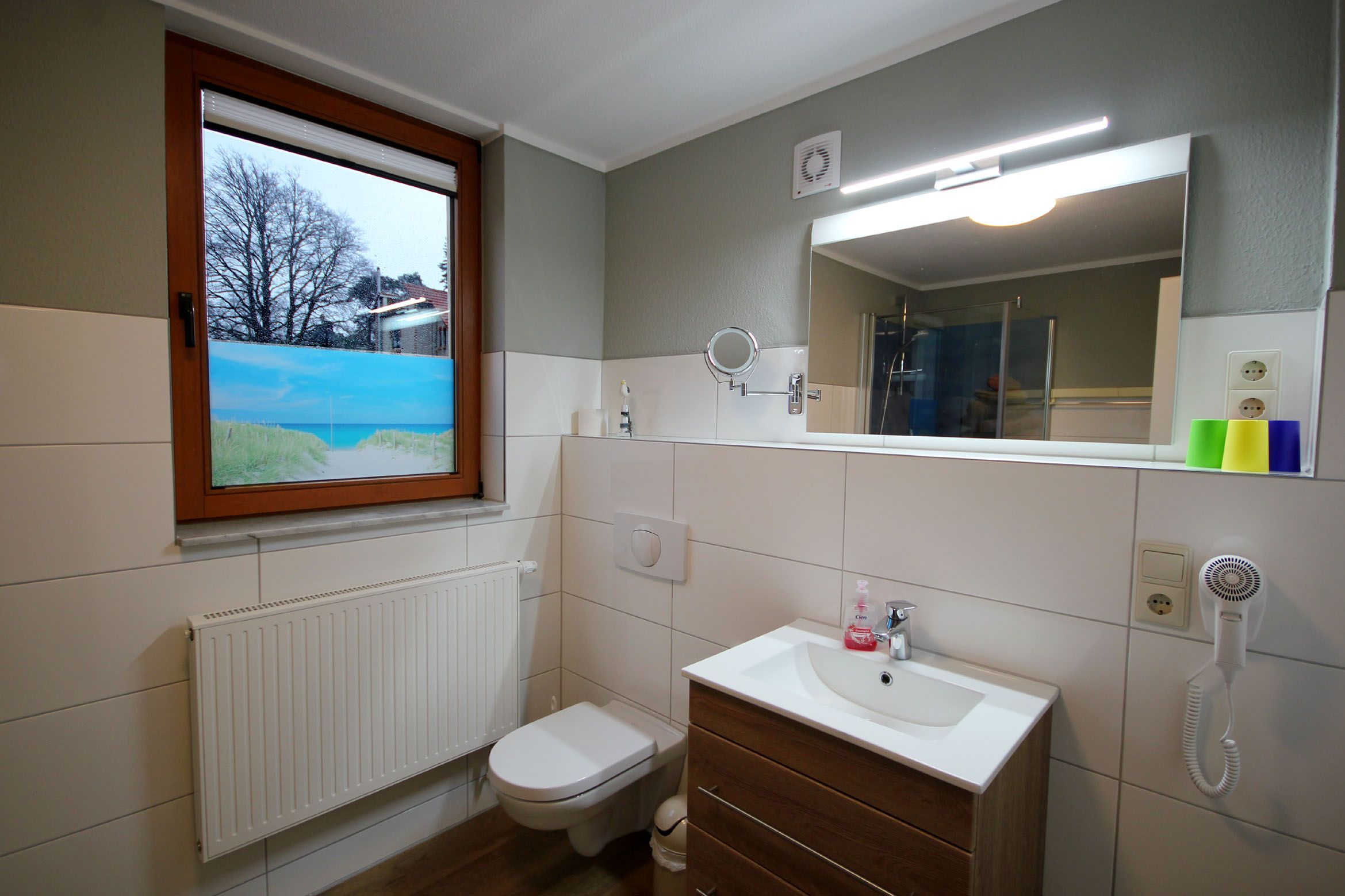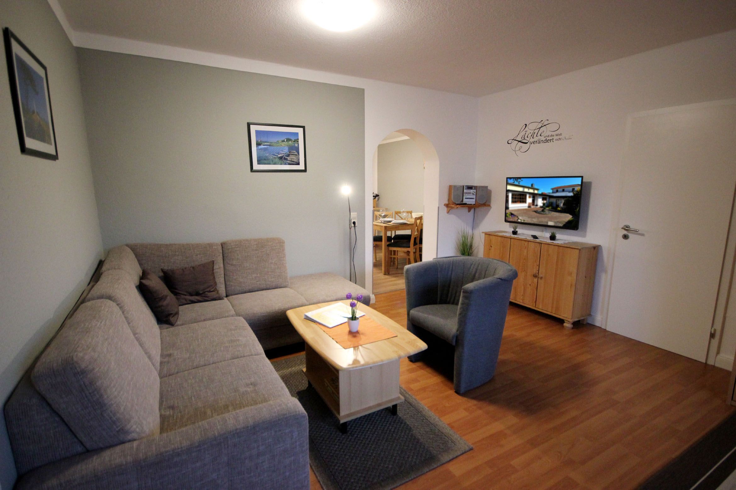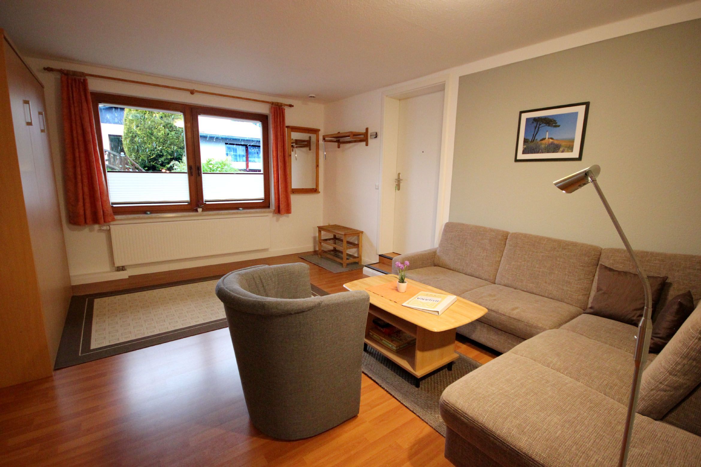 Ihre 2-Raum Nichtraucherwohnung 64RB2 befindet sich im Erdgeschoss des Hauses. Sie besitzt eine Größe von ca. 45 qm und ist für max. 4 Personen belegbar sowie komplett eingerichtet. Das Appartement teilt sich auf in einen gemütlichen Wohnbereich mit bequemer Sitzecke, separate Küche, ein Schlafzimmer und ein Tageslichtbad. Neben dem schönen Wohnraum mit Flachbildfernseher, WLAN und Radio mit CD-Player ist der Schlafraum mit einem weiteren Flachbild-TV, einem Doppelbett, Kleiderschrank und Verdunklungsmöglichkeit ausgestattet. Das komfortable Schrankbett im Wohnbereich bietet Schlafmöglichkeit für die 3. und 4. Person. Die Küche mit Essplatz für 4 Personen ist komplett mit 4-Platten-Herd, Dunstabzugshaube, Kühlschrank, Geschirrspüler, Kaffeemaschine, Wasserkocher, Toaster und weiteren diversen Küchenhelfern eingerichtet. Im Badezimmer erwartet Sie eine Dusche, WC, fest installierter Fön und ein Waschbecken. Als weiteres Highlight steht Ihnen im gemeinschaftlichen Gartenbereich eine extra Grillecke zum Verweilen sowie ein Spielturm mit Rutsche und Schaukeln zur Verfügung. Ein wohnungseigener PKW Stellplatz sowie Unterstellmöglichkeiten für Ihre Fahrräder sind direkt am Haus vorhanden. Eine hauseigene Waschmaschine steht Ihnen gegen Gebühr zur Verfügung.