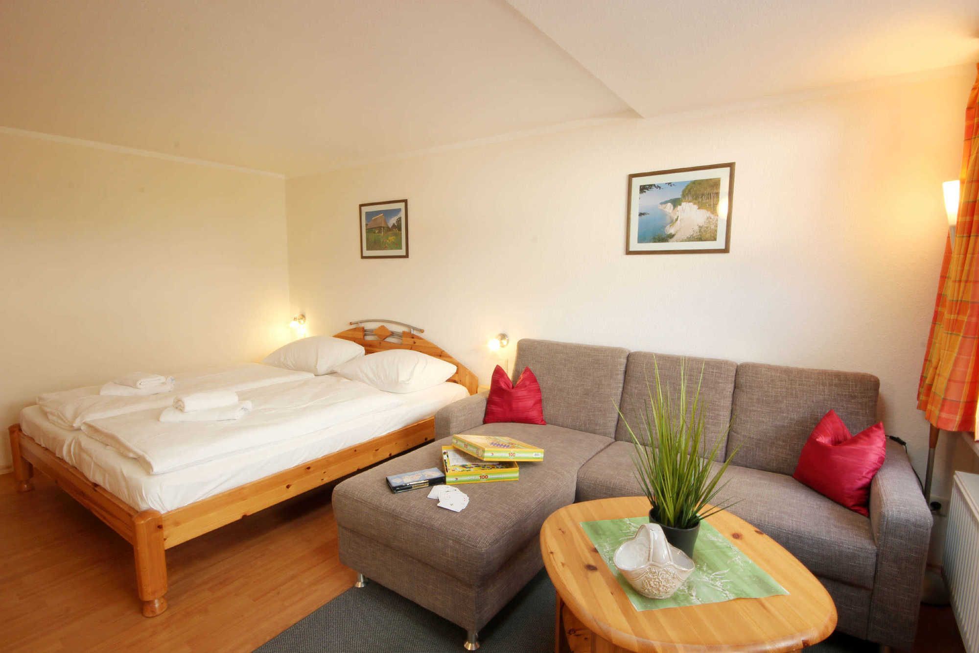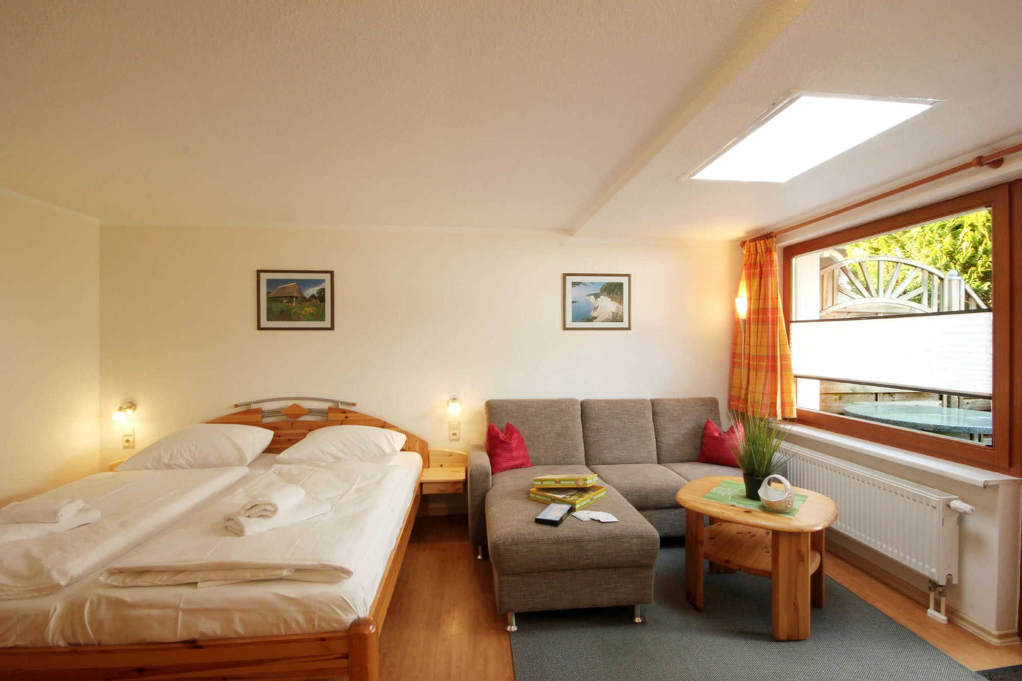 Das Appartement verfügt über einen kombinierten Wohn- und Schlafbereich mit Zugang zur Terrasse, eine separate Küche sowie ein Tageslichtbad. Neben dem schönen Wohnraum mit gemütlicher Sitzecke erwartet Sie unter anderem ein Flachbildfernseher, WLAN, Radio mit CD-Player sowie ein Kleiderschrank. Das Doppelbett im Wohnzimmer bietet die Schlafmöglichkeit für 2 Personen.